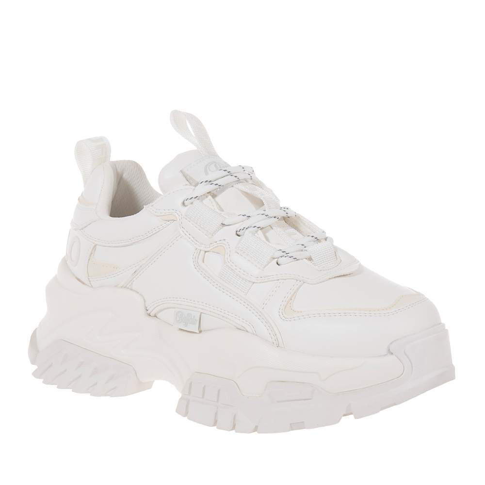 Γυναικεία sneakers Buffalo – BN1636507 δετά για σταθερό κράτημα στο βάδισμα και καλύτερη εφαρμογή. Σε λευκό χρώμα με υπέροχο μοντέρνο design θα γίνουν ο αχώριστος σύντροφός σας στις βόλτες σας. Με μαλακό πάτο και αντιολισθητική chunky σόλα.