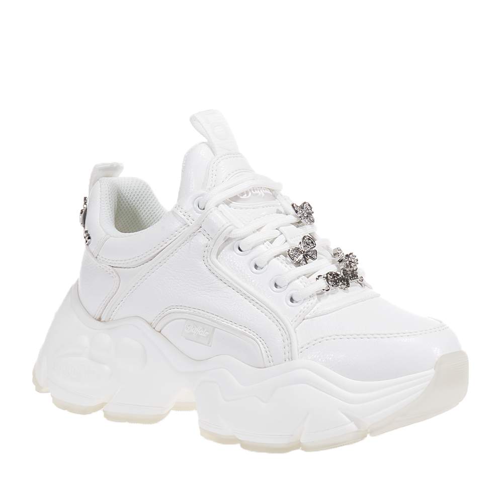 Γυναικεία sneakers Buffalo – BN16361711 δετά για σταθερό κράτημα στο βάδισμα και καλύτερη εφαρμογή. Σε λευκό χρώμα με υπέροχο μοντέρνο design θα γίνουν ο αχώριστος σύντροφός σας στις βόλτες σας. Με μαλακό πάτο και αντιολισθητική chunky σόλα.