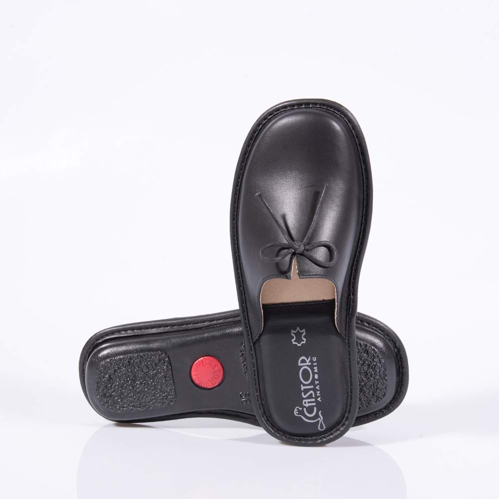Γυναικείες παντόφλες Castor – 3904 εξώφτερνες για εύκολη εφαρμογή σε κομψό δερμάτινο σχέδιο και δερμάτινη επένδυση με την εγγύηση της Castor. Σε μαύρο χρώμα . Χειροποίητες, κομψές, άνετες, ελαφριές, ανατομικές μοναδικά σχεδιασμένες από γνήσιο δέρμα, εξαιρετικής ποιότητας. Εύκαμπτες με μαλακό αντιολισθητικό πάτο που απορροφά τους κραδασμούς. Σχεδιασμένες για να σας χαρίζουν μέγιστη άνεση και κομψότητα!