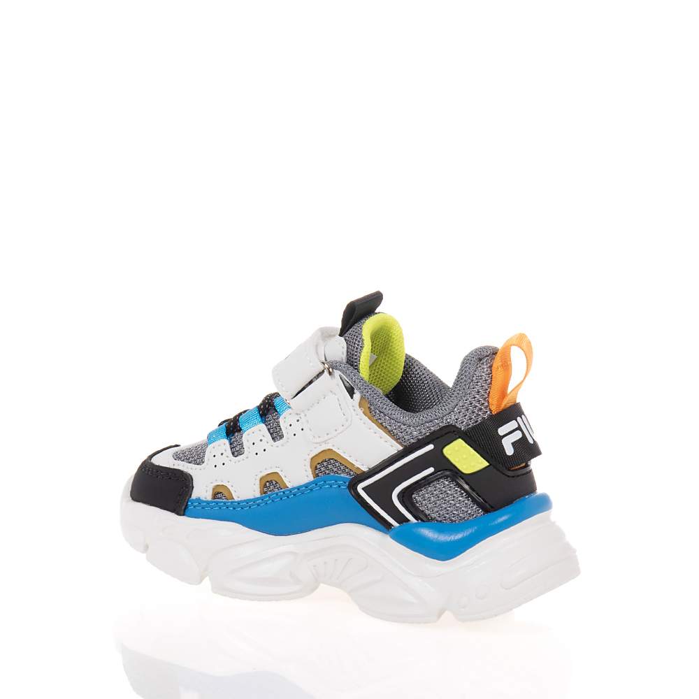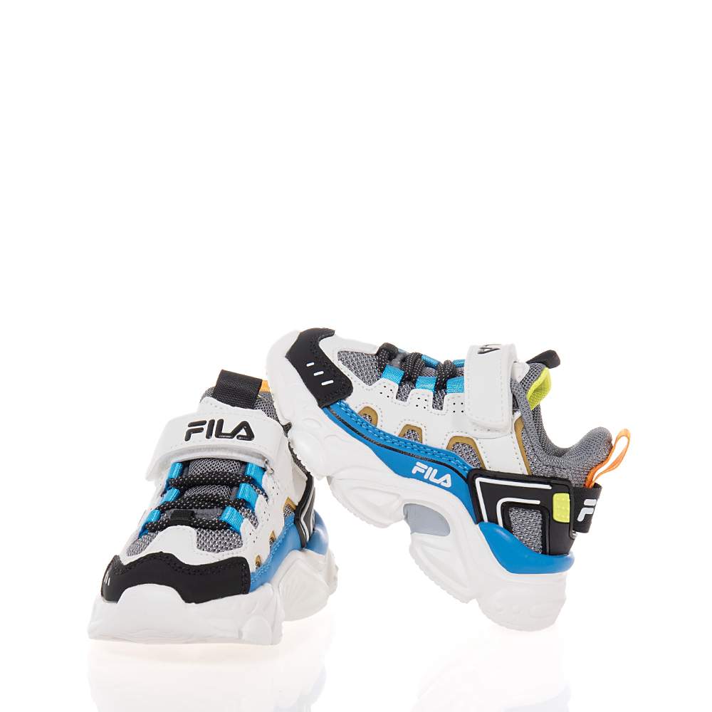 Παιδικά αθλητικά Fila – 7YF33002-312 με αυτοκόλλητο και κορδόνι λάστιχο για εύκολη εφαρμογή και αφαίρεση σε υπέροχο λευκό χρώμα με γκρι και γαλάζιες λεπτομέρειες που θα σας ενθουσιάσουν και ελαφριά κατασκευή για να φορέσουν οι μικροί μας φίλοι στο παιχνίδι ή τη βόλτα τους με άνεση και στυλ.