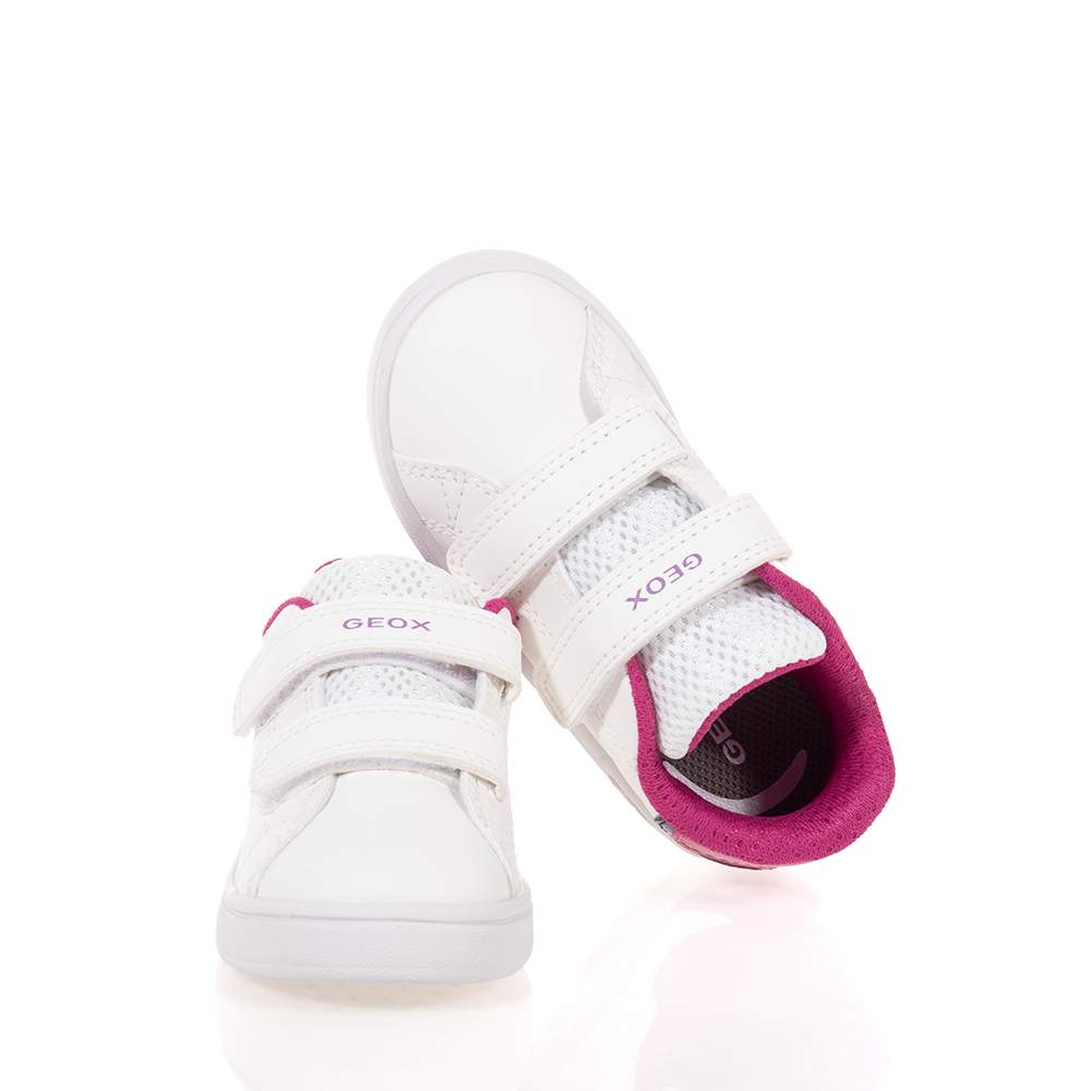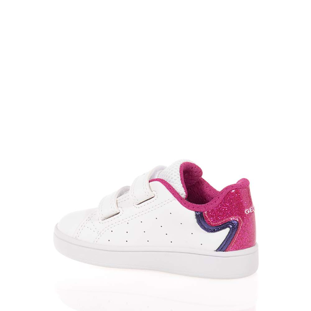 Παιδικά sneakers Geox B Eclyper G. A – B365MA με αυτοκόλλητα για εύκολη εφαρμογή και αφαίρεση. Υπέροχη κατασκευή με ραφές αντοχής και κομψό design σε λευκό χρώμα με φούξια λεπτομέρειες που θα ενθουσιάσει τις μικρές μας φίλες. Ιδανικά για το σχολείο ή τη βόλτα τους με άνεση και στυλ.