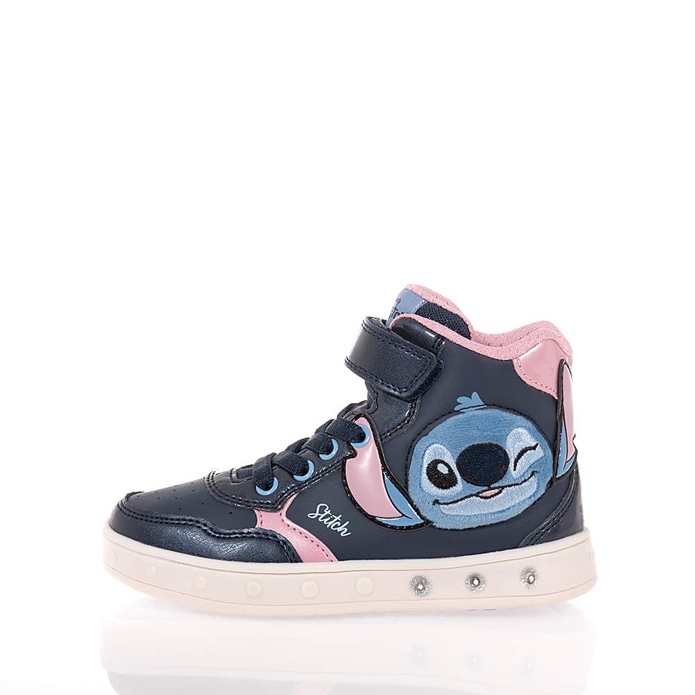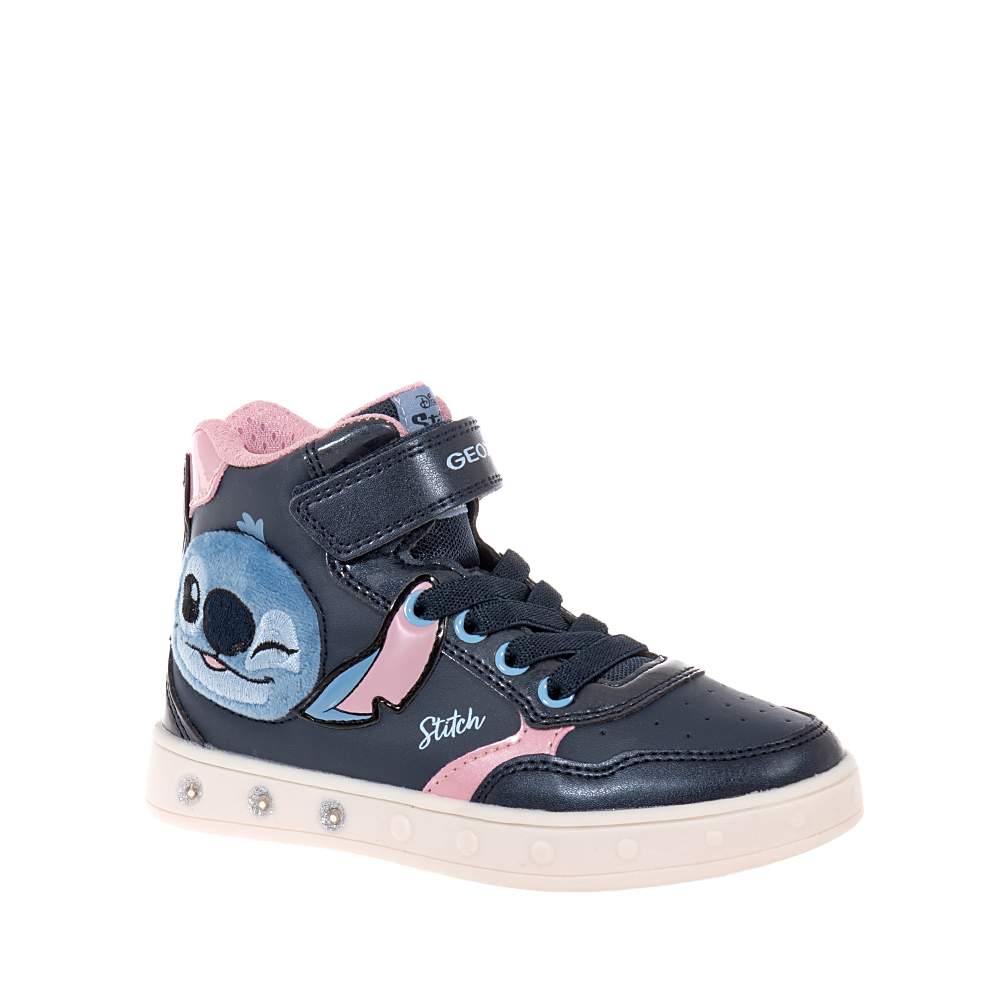 Παιδικά μποτάκια Geox J Skylin G. H – J568WH δετά και με φερμουάρ για εύκολη και προσαρμοσμένη εφαρμογή σε μπλε χρώμα με υπέροχο σχέδιο Stitch στο πλάι. Καταπληκτική ποιότητα κατασκευής με φωτάκια που αναβοσβήνουν κατά το βηματισμό με σύστημα On/Off και που θα ενθουσιάσουν τις μικρές μας φίλες.