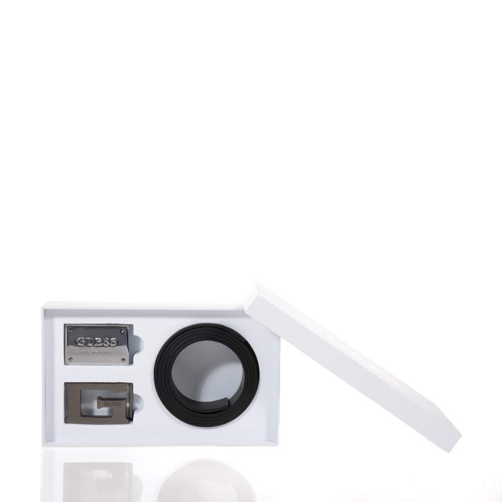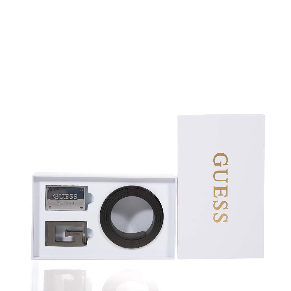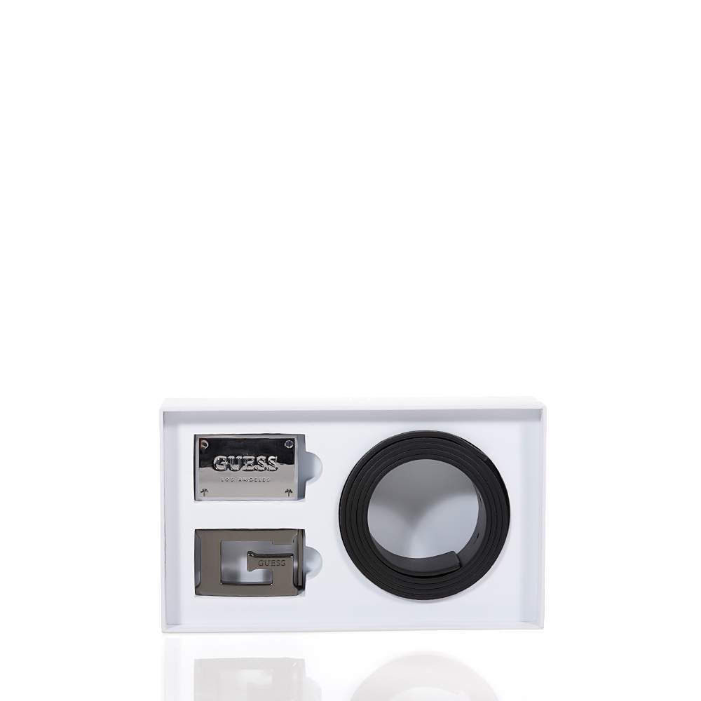 Ανδρική ζώνη Guess – GFBOXMP5401 σε μαύρο και ανθρακί χρώμα με σταμπωτά μοτίφ, για να συνδυάσετε εύκολα με δύο διαφορετικούς τρόπους. Με ρυθμιζόμενο κλιπ και δύο διαφορετικά buckles για διαφορετικές εμφανίσεις σε gift.