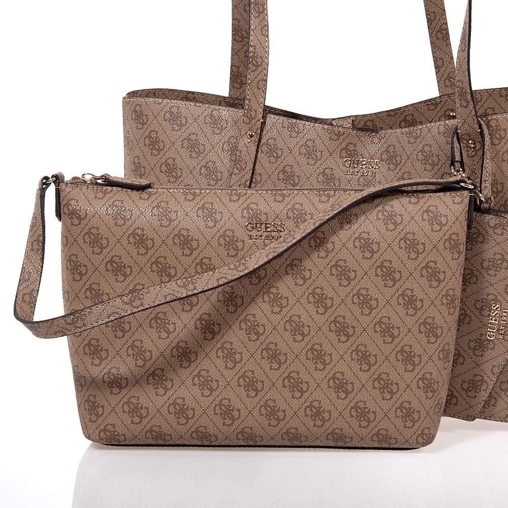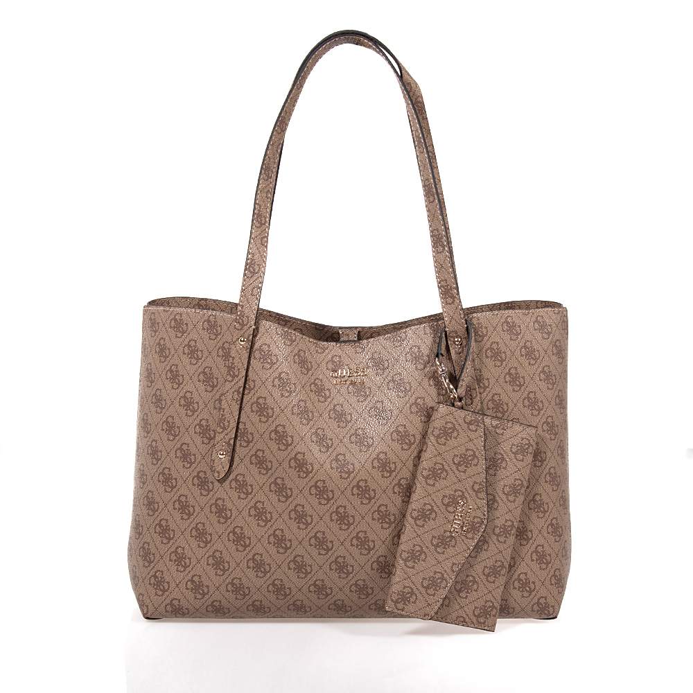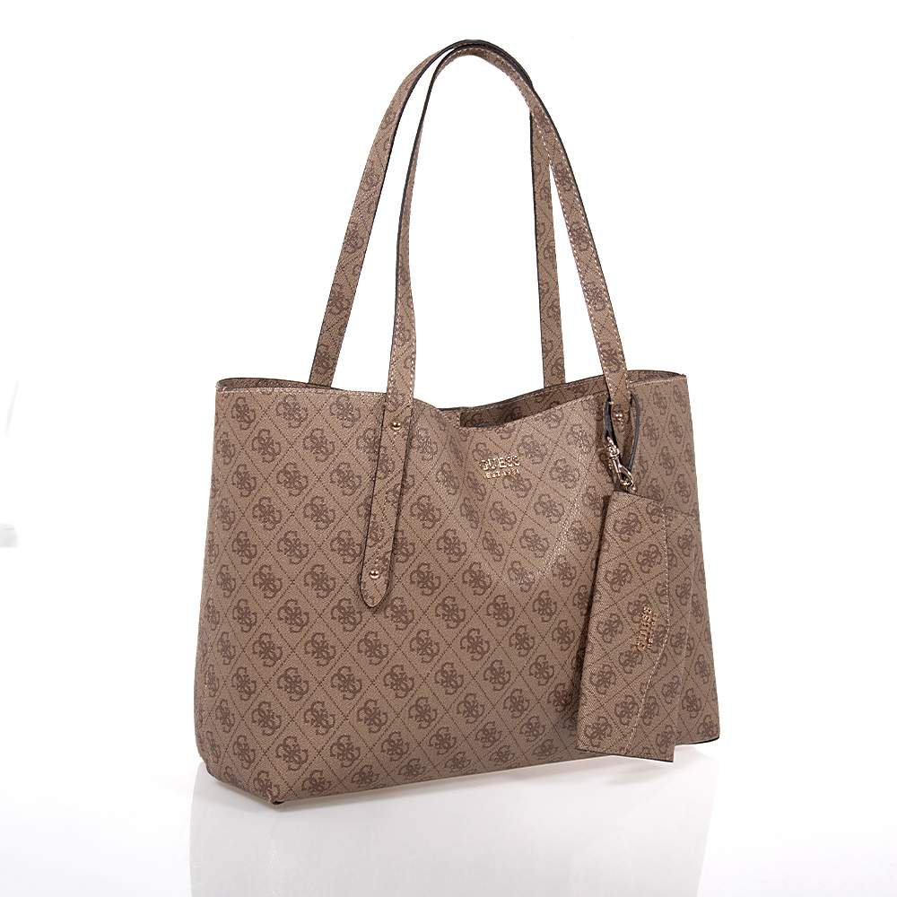 Γυναικεία shopper τσάντα GUESS – HWLG9648230 σε υπέροχο μπεζ χρώμα με σταμπωτά μοτίφ και λιτή γραμμή για να συνδυάσετε εύκολα με άποψη και στυλ. Ιδανική για τις εξόδους σας θα εντυπωσιάσετε και θα ενθουσιαστείτε με μία κομψή τσάντα που θα αναδείξει το σύνολό σας. Εσωκλείεται αφαιρούμενο τσαντάκι από το ίδιο υλικό.