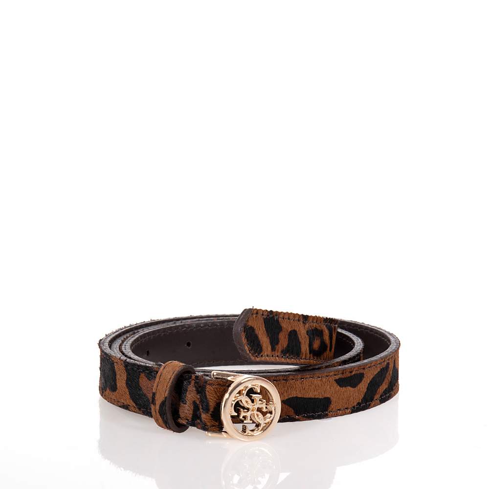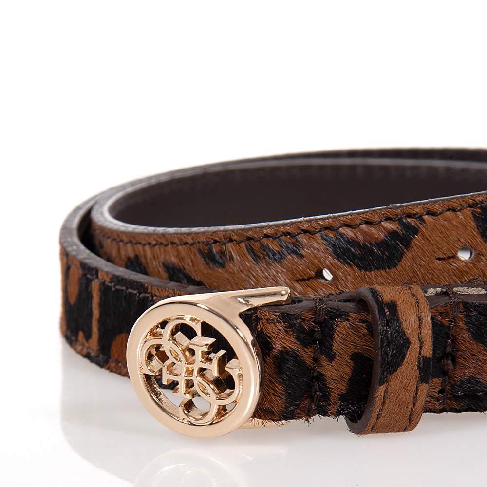 Γυναικεία ζώνη Guess – BW9305P5420 σε ταμπά λεοπάρ χρώμα και γνήσιο δέρμα pony skin, για να συνδυάσετε εύκολα με δύο διαφορετικούς τρόπους. Με ρυθμιζόμενο κλιπ με λογότυπο σε χρυσαφί αχνό χρώμα.