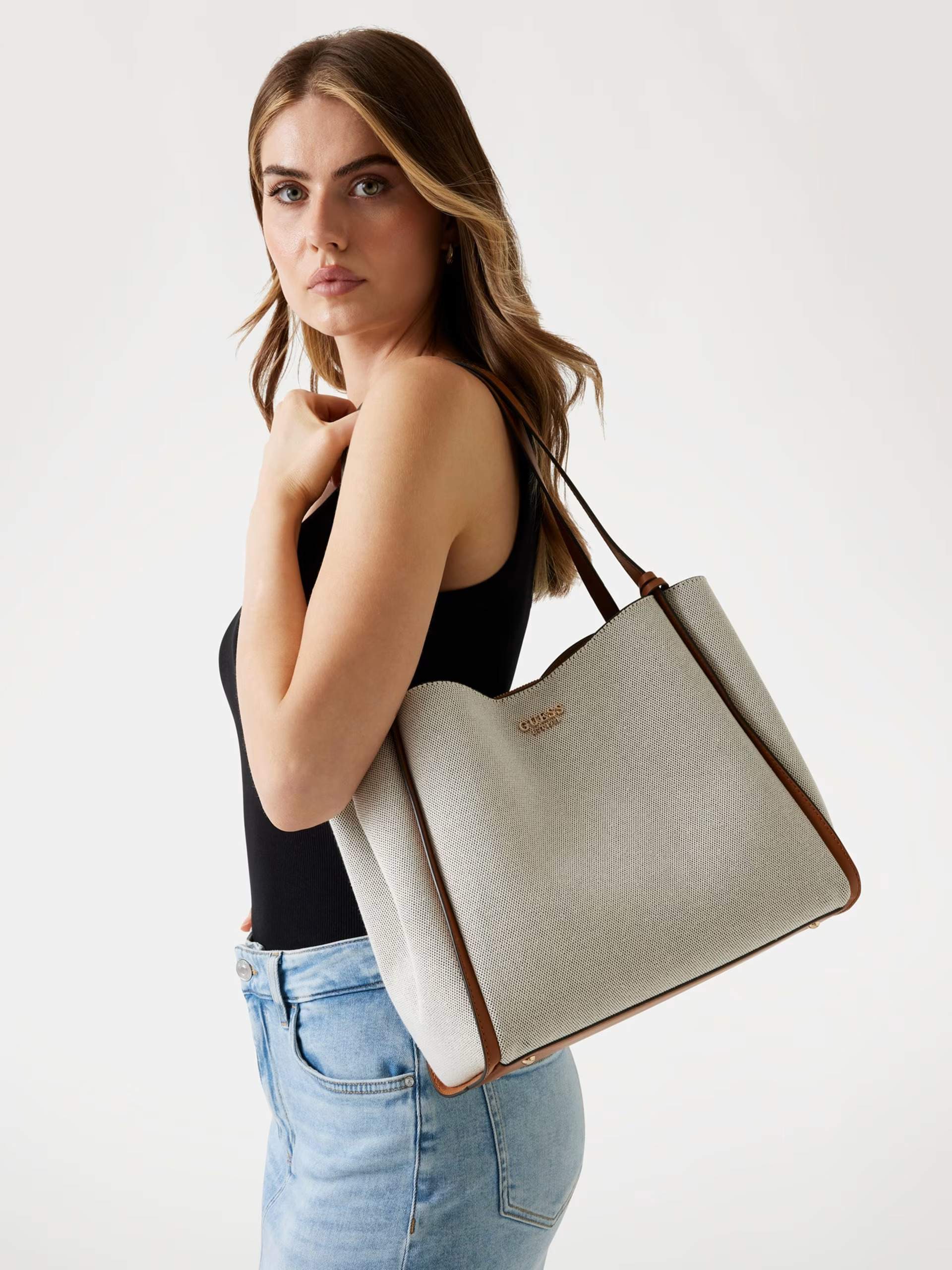 Γυναικεία τσάντα ώμου GUESS – HWAG9662230 σε υπέροχο εκρού χρώμα με ταμπά λεπτομέρειες και λιτή γραμμή για να συνδυάσετε εύκολα με άποψη και στυλ. Ιδανική για τις εξόδους σας θα εντυπωσιάσετε και θα ενθουσιαστείτε με μία κομψή τσάντα που θα αναδείξει το σύνολό σας.