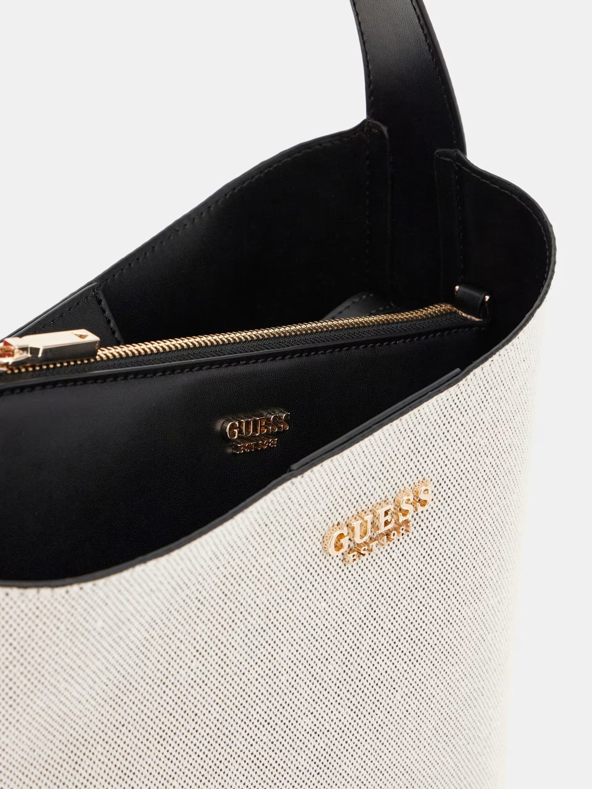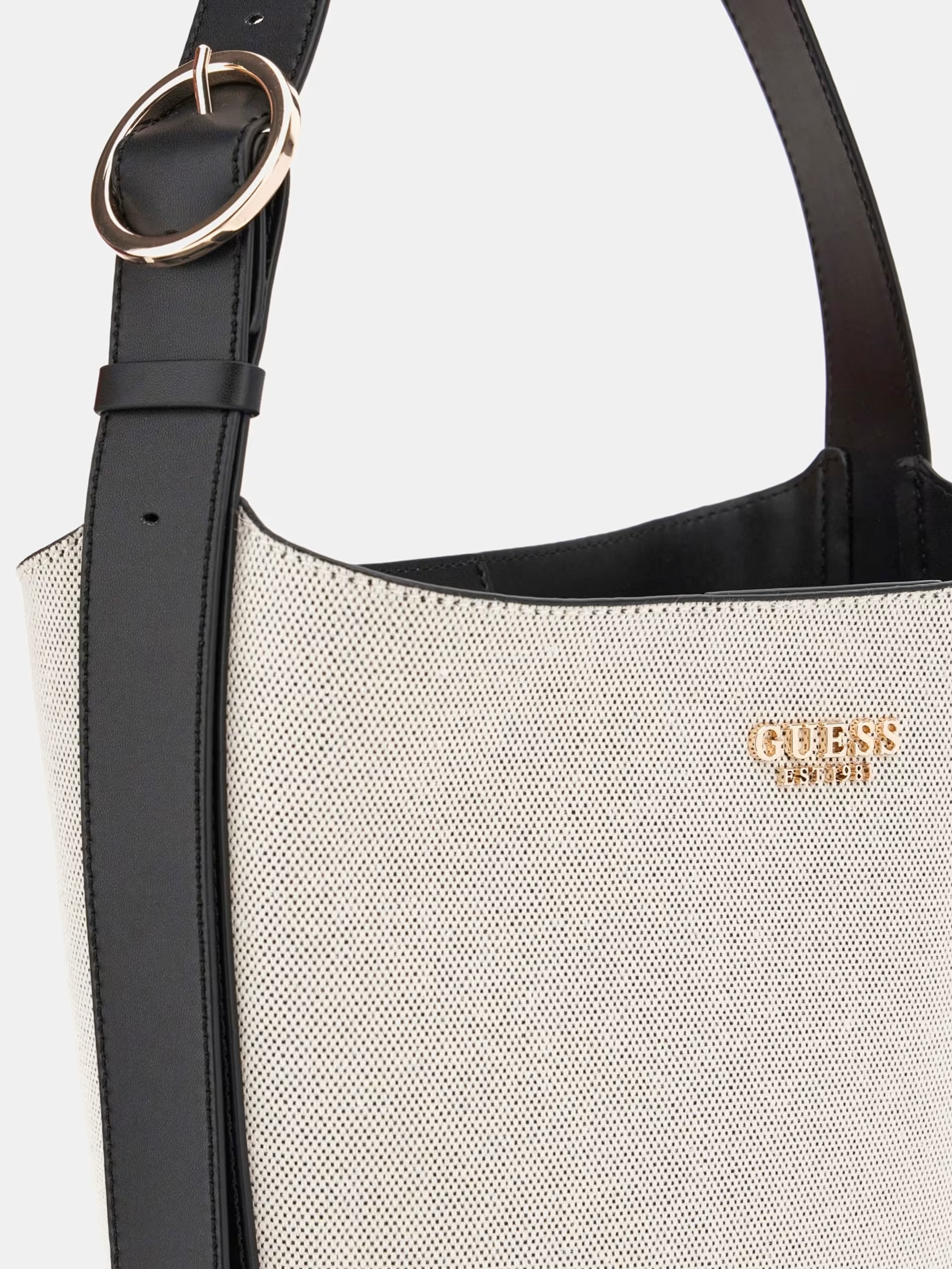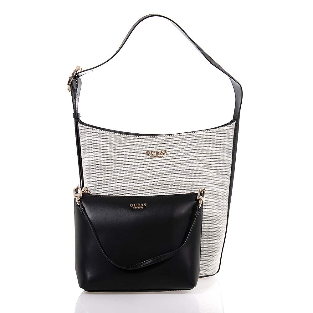 Γυναικεία τσάντα ώμου GUESS – HWAG9662040 σε υπέροχο συνδυασμό offwhite καμβά και μαύρου χρώματος και λιτή γραμμή για να συνδυάσετε εύκολα με άποψη και στυλ. Ιδανική για τις εξόδους σας θα εντυπωσιάσετε και θα ενθουσιαστείτε με μία κομψή τσάντα που θα αναδείξει το σύνολό σας. Εσωκλείεται τσαντάκι pochette με φερμουάρ.