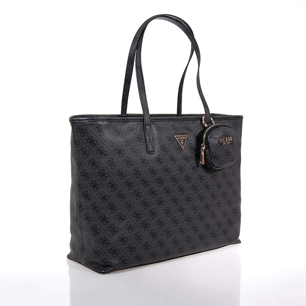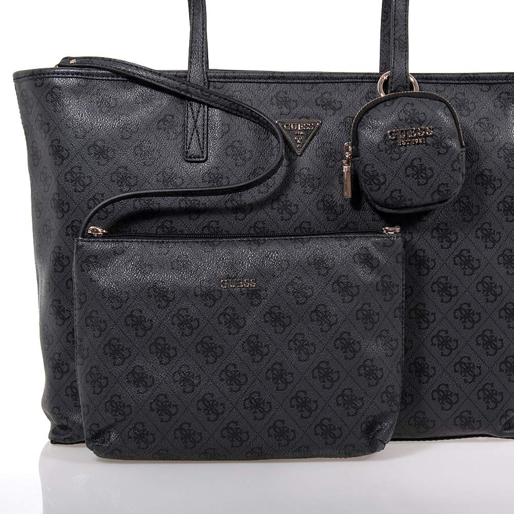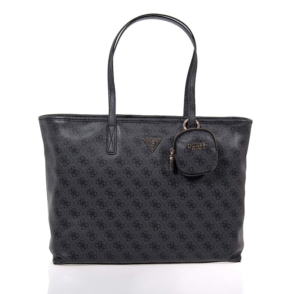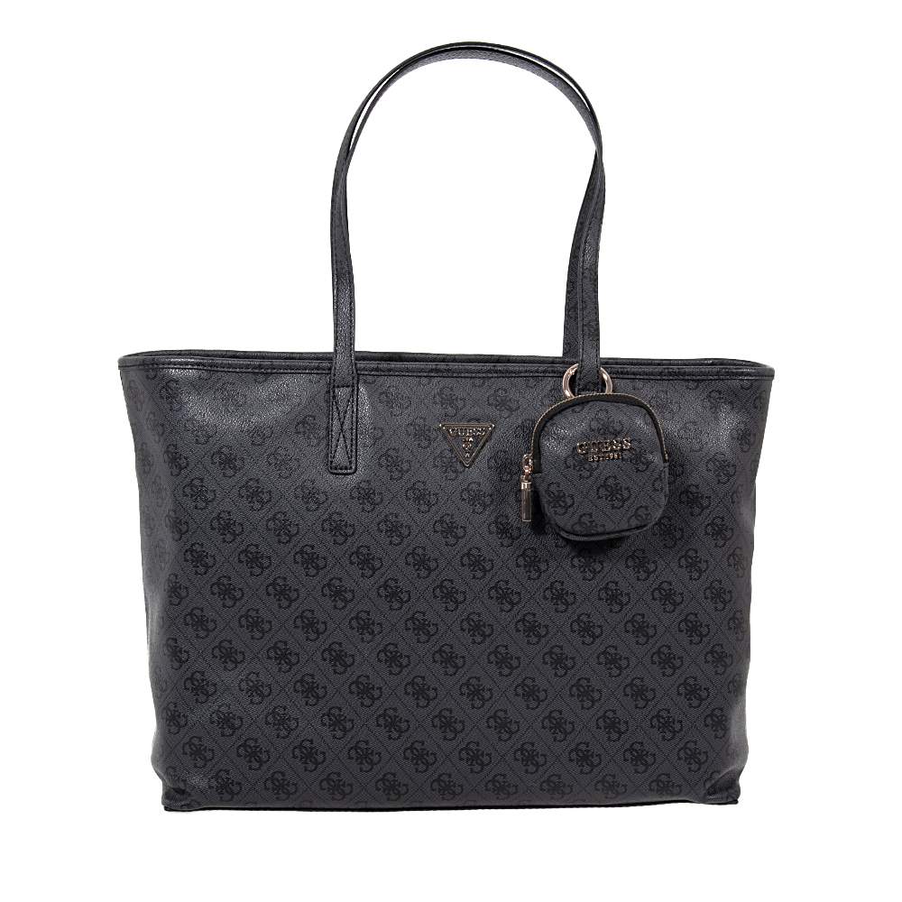 Γυναικεία shopper τσάντα GUESS – HWSL7124240 σε υπέροχο ανθρακί χρώμα με σταμπωτά μοτίφ για να συνδυάσετε εύκολα με άποψη και στυλ. Συνοδεύεται με αποσπώμενο πορτοφολάκι. Ιδανική για τις εξόδους σας θα εντυπωσιάσετε και θα ενθουσιαστείτε με μία κομψή τσάντα που θα αναδείξει το σύνολό σας. Εσωκλείεται αφαιρούμενο τσαντάκι από το ίδιο υλικό.