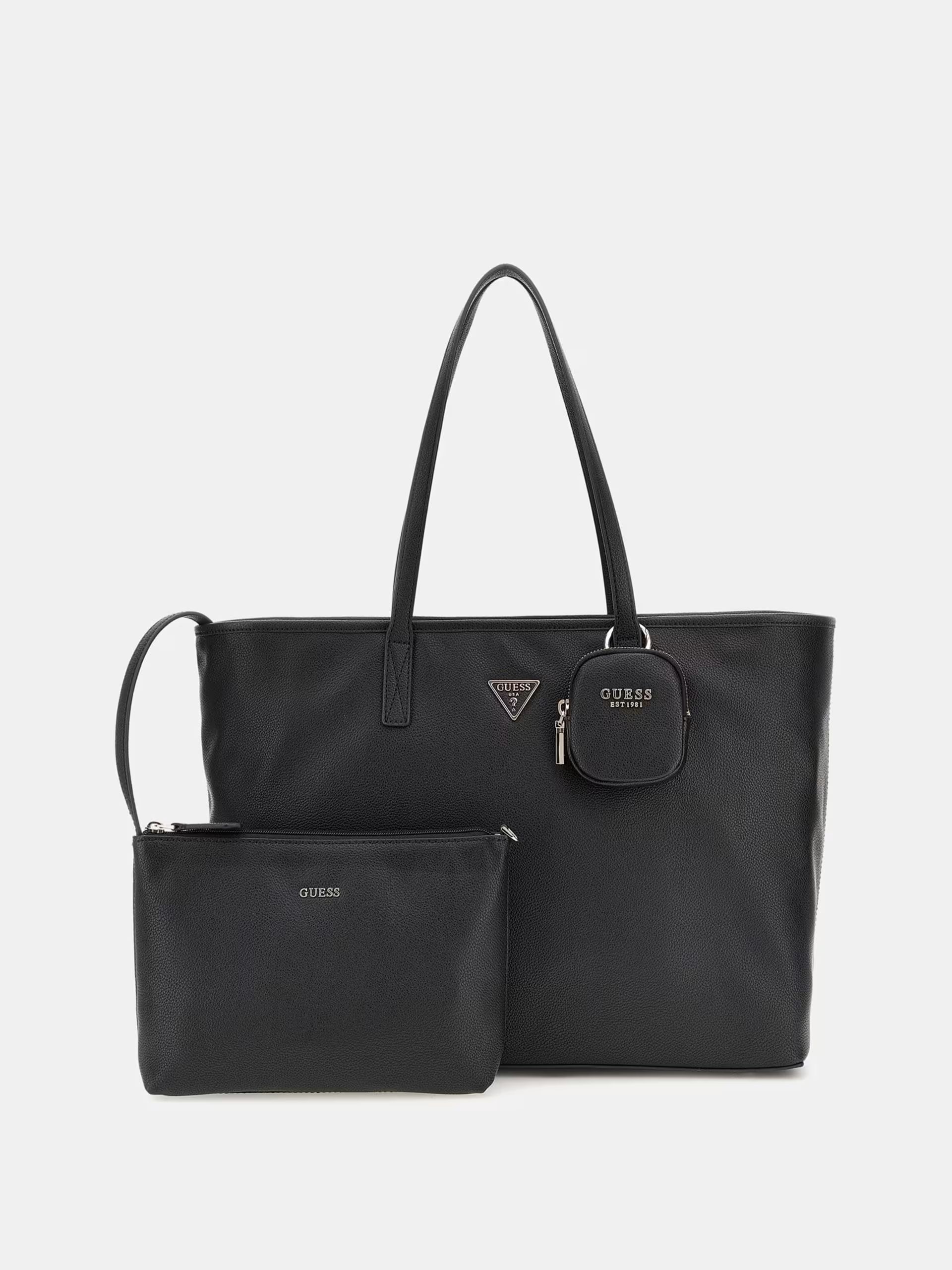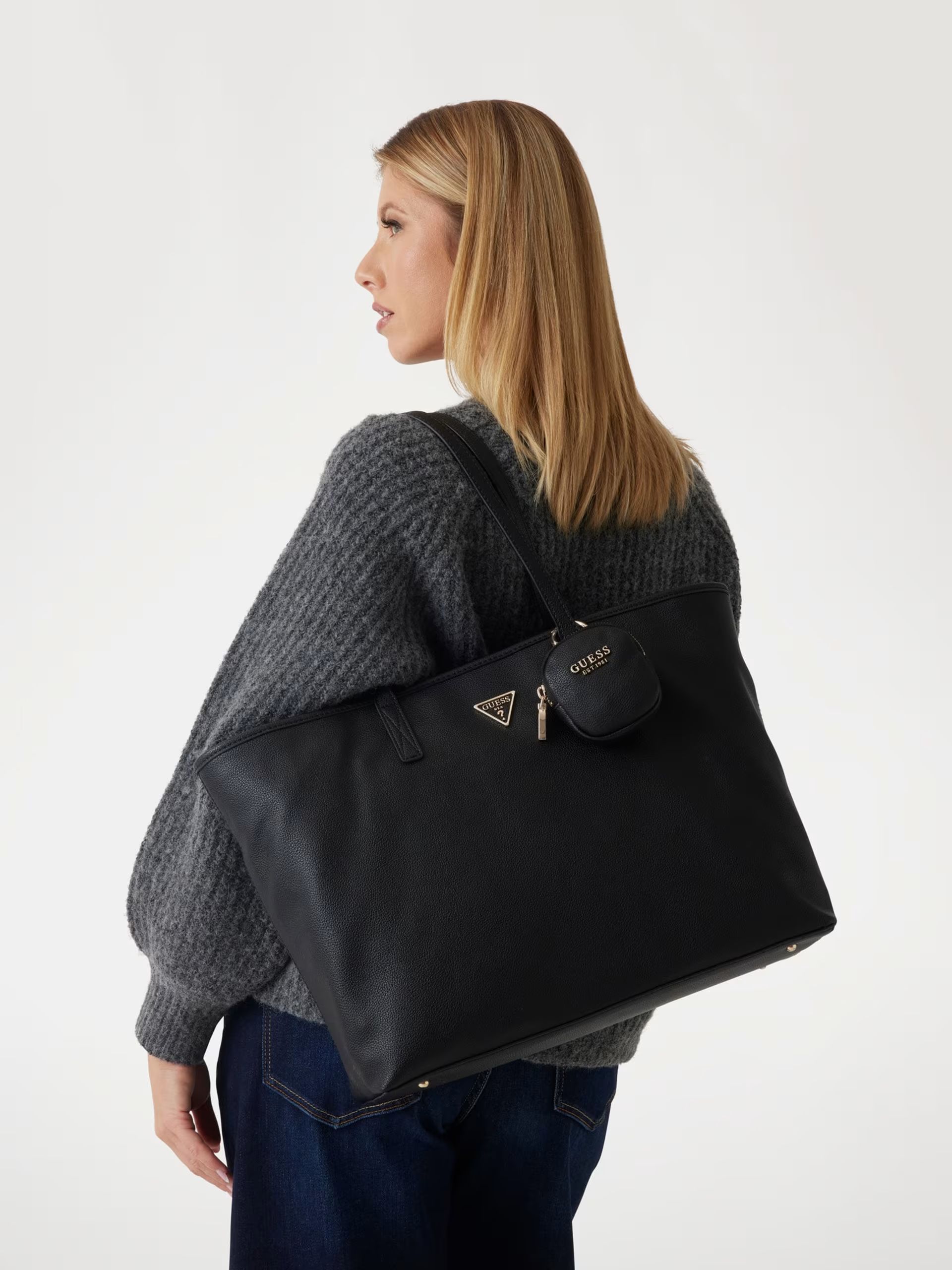 Γυναικεία shopper τσάντα GUESS – HWBG7124240 σε υπέροχο μαύρο χρώμα για να συνδυάσετε εύκολα με άποψη και στυλ. Συνοδεύεται με αποσπώμενο πορτοφολάκι. Ιδανική για τις εξόδους σας θα εντυπωσιάσετε και θα ενθουσιαστείτε με μία κομψή τσάντα που θα αναδείξει το σύνολό σας. Εσωκλείεται αφαιρούμενο τσαντάκι από το ίδιο υλικό.