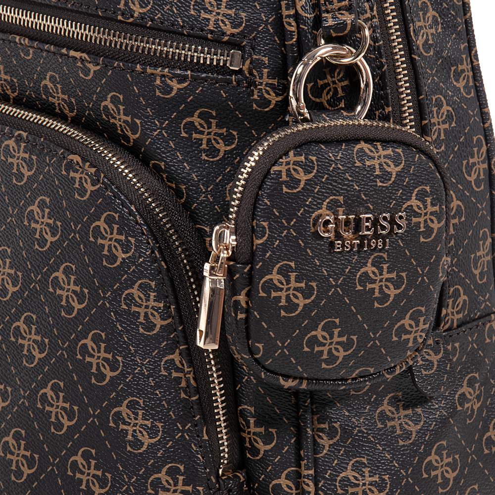 Γυναικείο backpack GUESS – HWQG7124350 σε υπέροχο καφέ χρώμα με σταμπωτά μοτίφ και λιτή γραμμή για να συνδυάσετε εύκολα με άποψη και στυλ. Ιδανική για τις εξόδους σας θα εντυπωσιάσετε και θα ενθουσιαστείτε με μία σπορ τσάντα που θα αναδείξει το σύνολό σας.