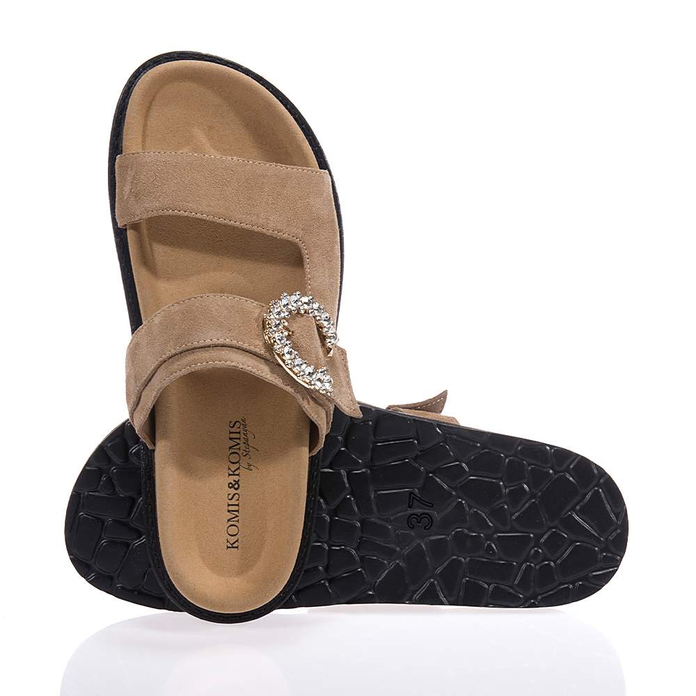 Γυναικεία slides Komis & Komis – B12 σε καταπληκτικό μπεζ χρώμα που πάντα θέλατε στη συλλογή σας και που θα λατρέψετε χάρη στη μοντέρνα εμφάνισή τους. Με δύο λουράκια για σταθερό κράτημα θα σας χαρίσουν άνεση και κομψότητα.