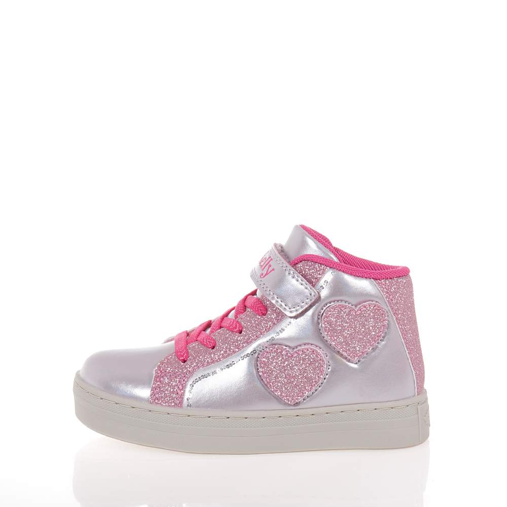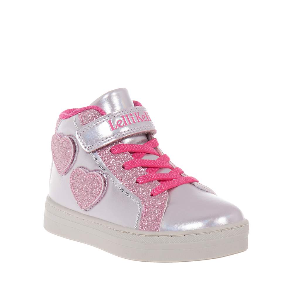 Παιδικά high sneakers για κορίτσια Lelli Kelly – LKAA5216 με αυτοκόλλητο και κορδόνι λάστιχο για εύκολη εφαρμογή και αφαίρεση. Σε ροζ-ασημί χρώμα με υπέροχα σχέδια στο πλάι με ροζ καρδούλες glitter που θα ενθουσιάσουν τις μικρές μας φίλες. Συνοδεύονται από δεύτερο ζευγάρι καρδούλες σε φούξια χρώμα για 2 διαφορετικές εμφανίσεις ανάλογα με τη διάθεση! Εξαιρετικά άνετα με μαλακό πάτο για μέγιστη άνεση στην εφαρμογή. Συνοδεύεται με δωράκι Lelli Kelly.