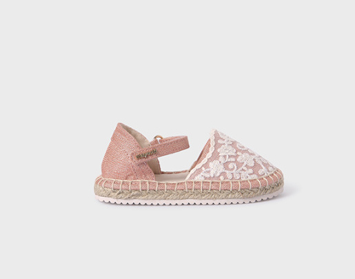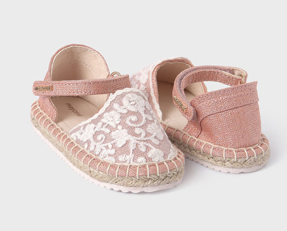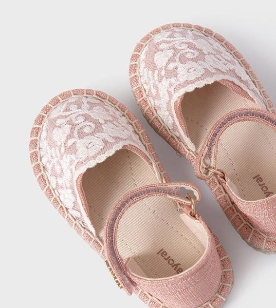 Παιδικές εσπαντρίγιες Mayoral – 45555 σε υπέροχο χάλκινο χρώμα με δαντέλα που θα σας ενθουσιάσουν. Μοναδική ποιότητα υλικών που αγκαλιάζει όμορφα και σταθερά τα πόδια των μικρών μας κοριτσιών με αυτοκόλλητο για εύκολη και προσαρμοσμένη εφαρμογή.