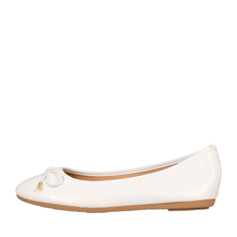 Γυναικείες μπαλαρίνες σε λιτή γραμμή με λεπτό φιογκάκι για κομψές εμφανίσεις. Σε λευκό κροκό για να συνδυάσετε εύκολα στη βόλτα ή το γραφείο. 2S2018-169