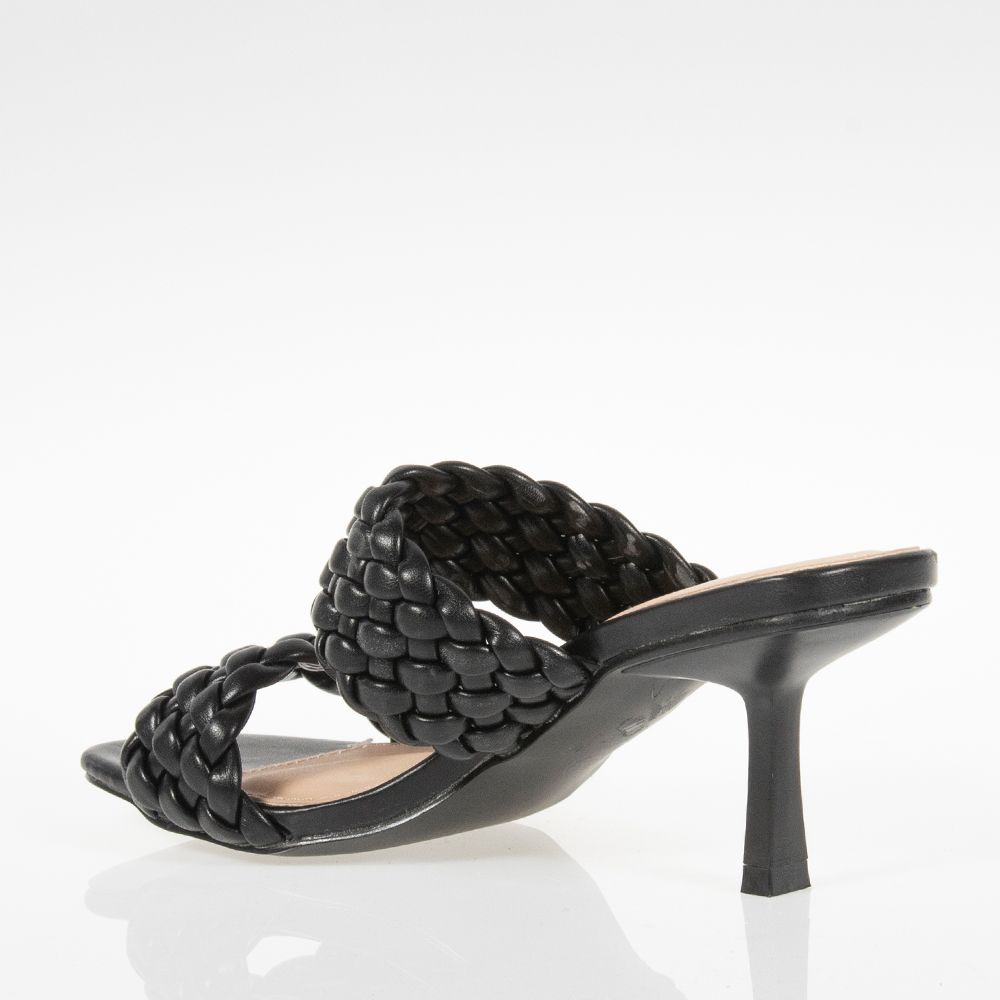 Θηλυκά mules με ψηλό τακούνι για κομψές εμφανίσεις. Σε υπέροχο μαύρο χρώμα και δύο πλεχτές φάσες για αμέτρητους συνδυασμούς με όλα τα σύνολά σας. Ιδανικά θα τα φορέσετε στις πρωινές ή απογευματινές βόλτες σας με κομψότητα και στυλ. 1-151
