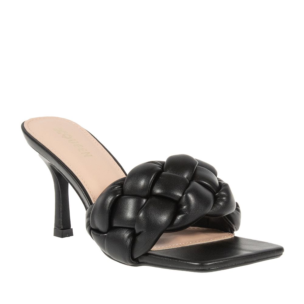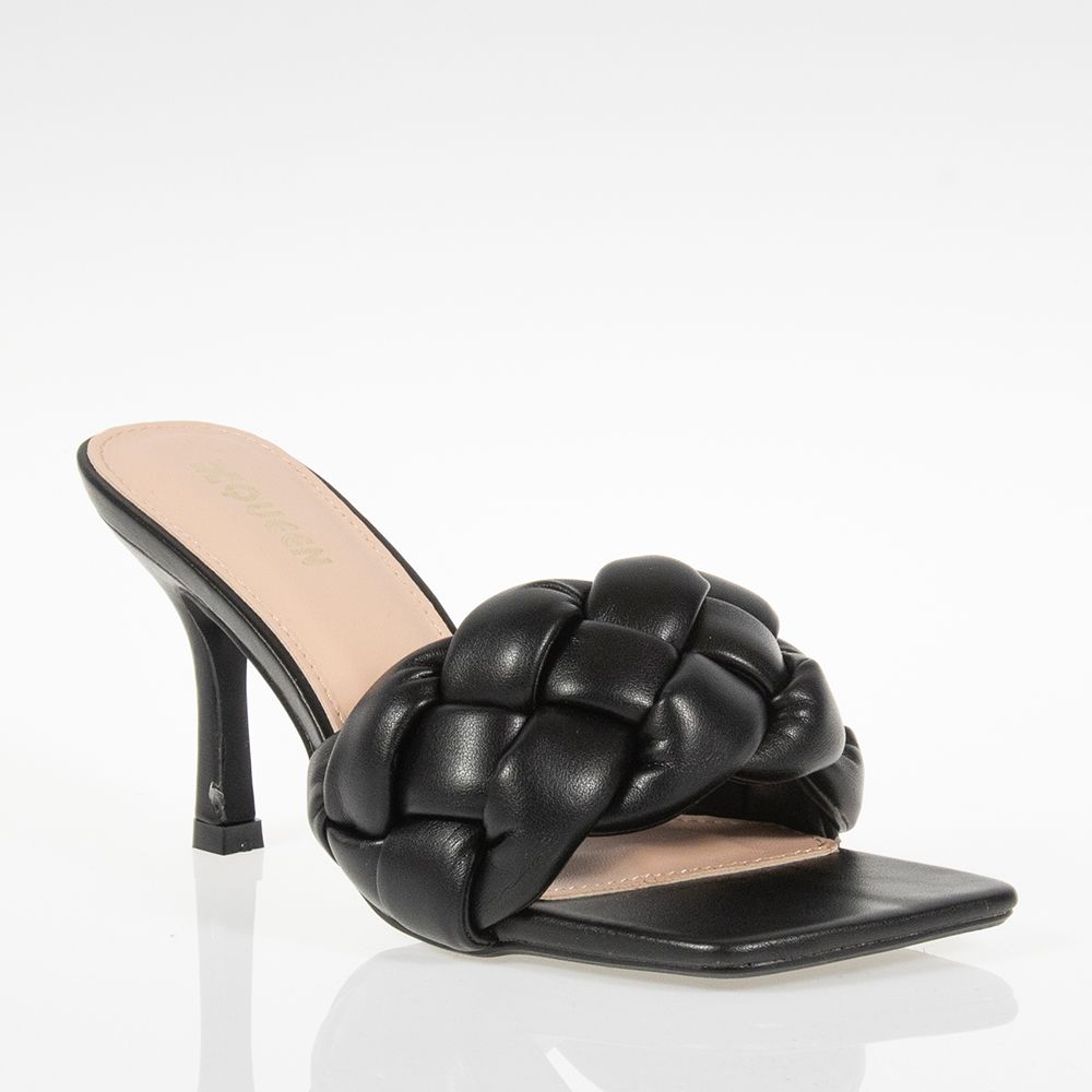 Θηλυκά mules με ψηλό τακούνι για κομψές εμφανίσεις. Σε υπέροχο μαύρο χρώμα και πλεχτή φάσα για αμέτρητους συνδυασμούς με όλα τα σύνολά σας. Ιδανικά θα τα φορέσετε στις πρωινές ή απογευματινές βόλτες σας με κομψότητα και στυλ. 1-136