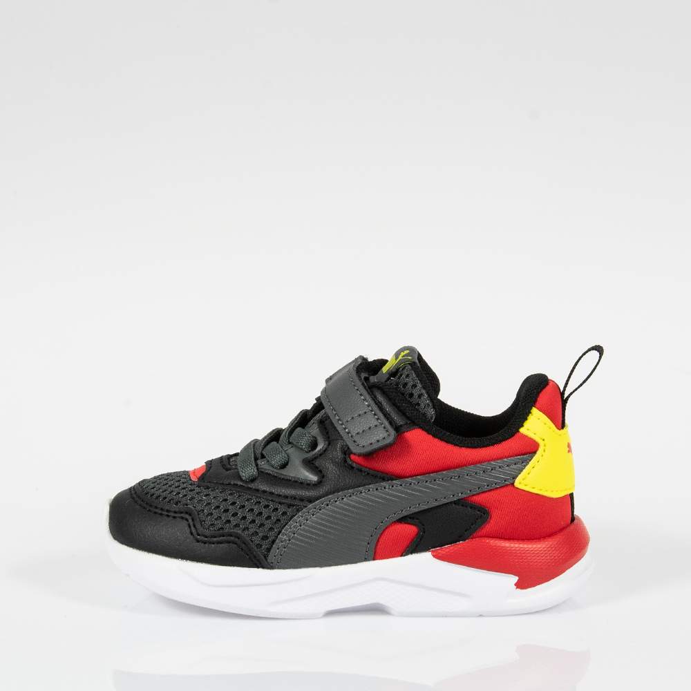 Παιδικά αθλητικά Puma – 375069-01 με αυτοκόλλητο και κορδόνι λάστιχο για εύκολη εφαρμογή και αφαίρεση. Σε μαύρο χρώμα με κόκκινες και κίτρινες λεπτομέρειες είναι τα πρωτοποριακά training αθλητικά ιδανικά για τη βόλτα ή τις αθλητικές δραστηριότητες. Ελαφριά και εύκαμπτη κατασκευή για άνεση και στυλ.