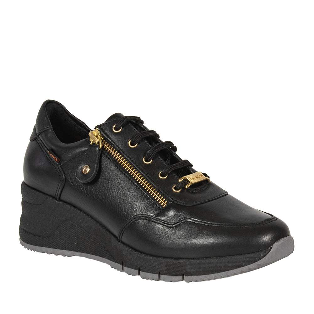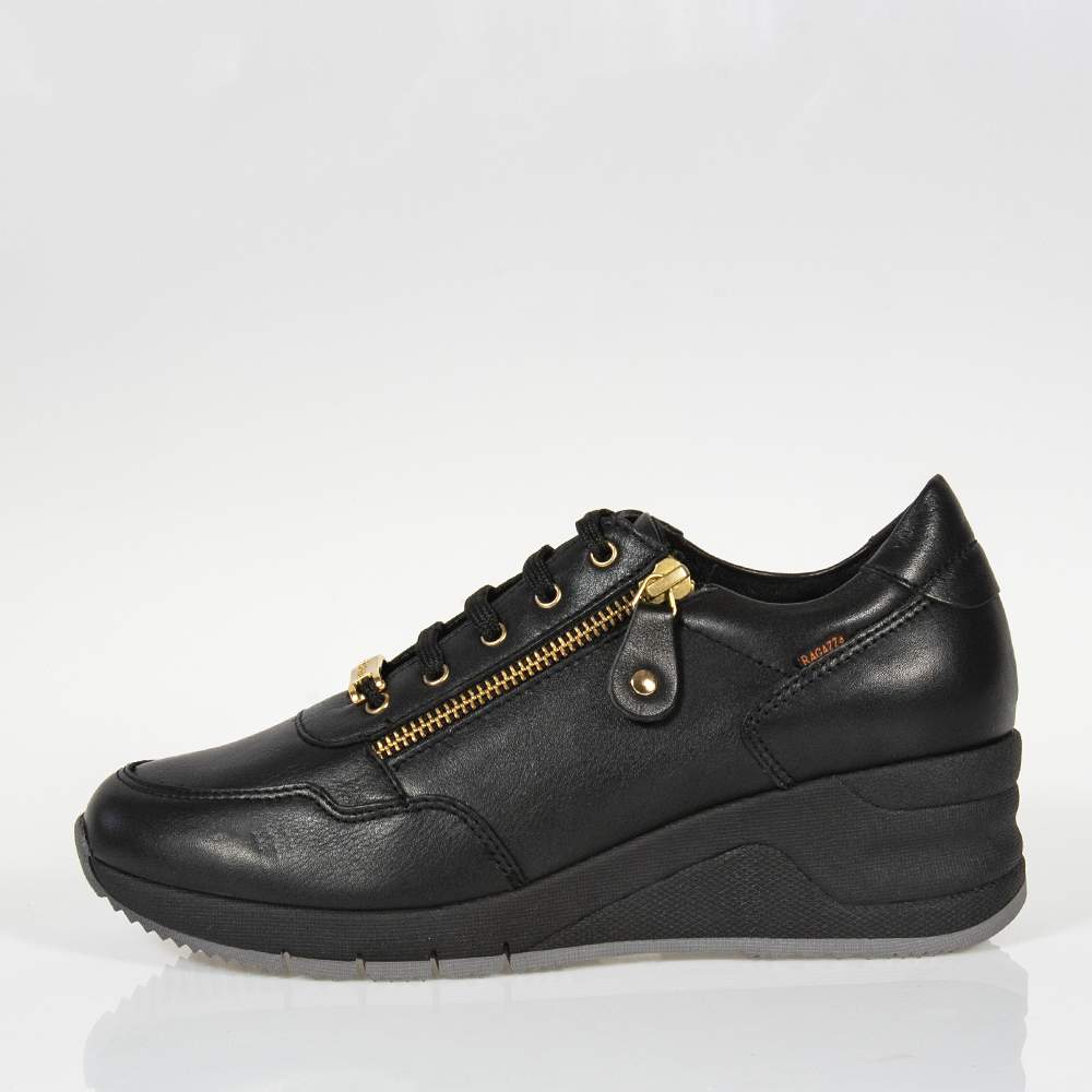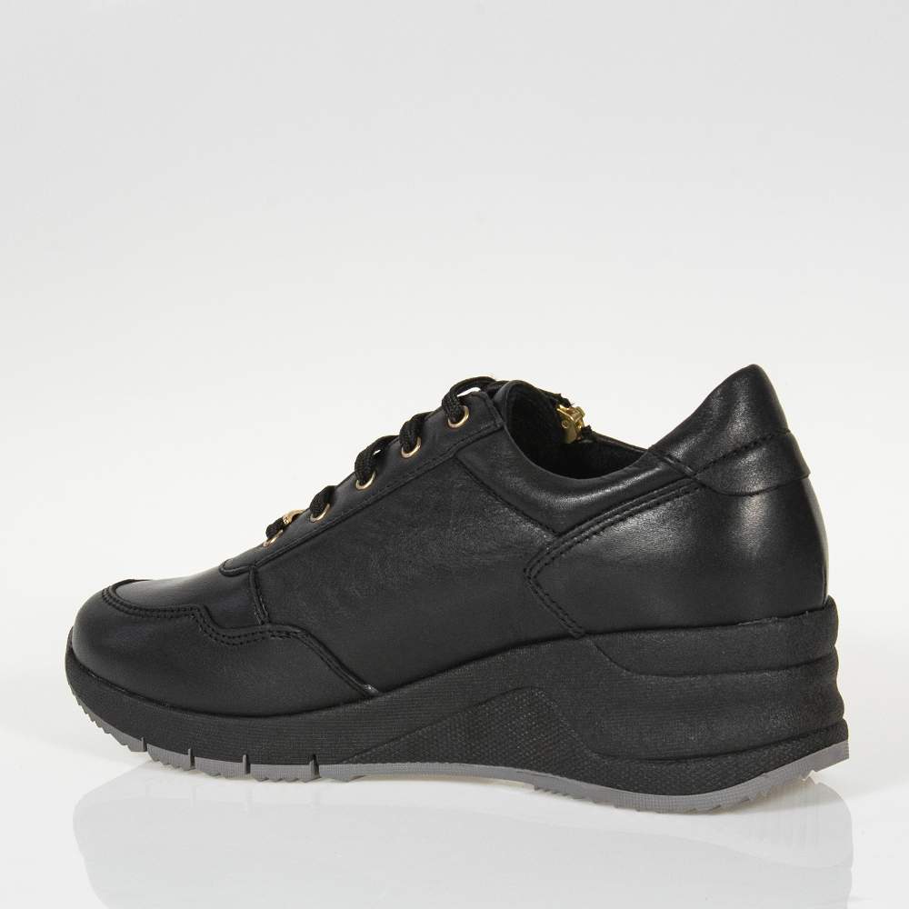 Γυναικεία sneakers Ragazza – 0208-A δετά για σταθερή εφαρμογή και με φερμουάρ σε μαύρο δέρμα. Με μεσαία πλατφόρμα για άνεση στο βάδισμα, θα σας ενθουσιάσει και θα δώσει στις εμφανίσεις σας κομψό ύφος.