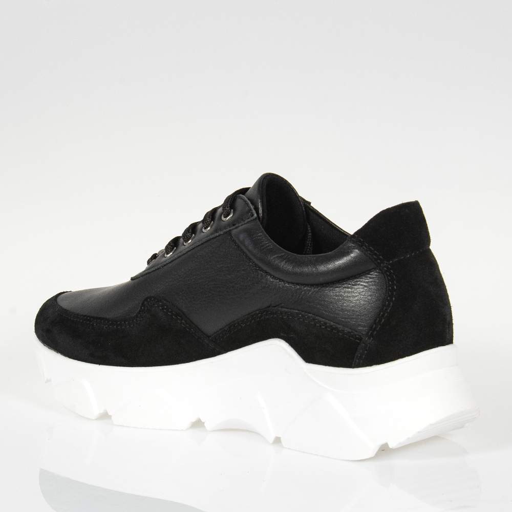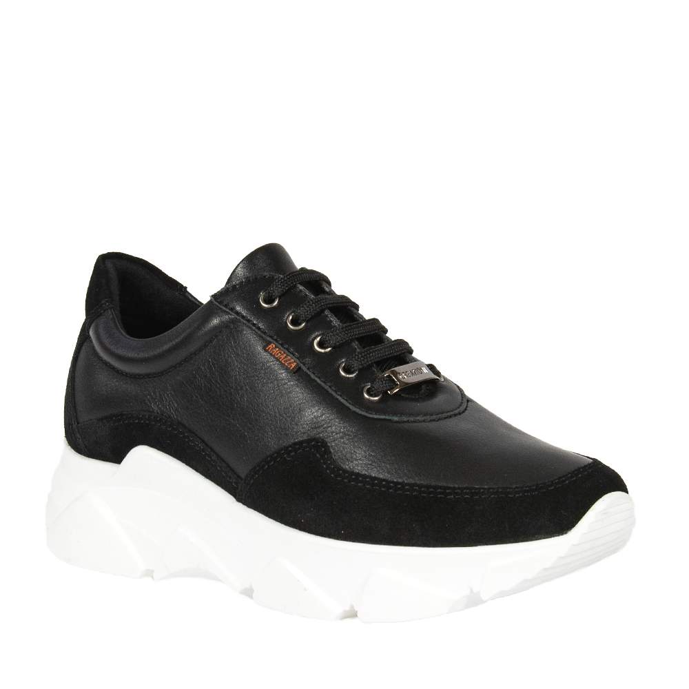 Γυναικεία sneakers Ragazza – 0245 δετά για σταθερή εφαρμογή σε μαύρο χρώμα και γνήσιο δέρμα που θα σας ενθουσιάσει και θα δώσει στις εμφανίσεις σας ένα κομψό ύφος. Με λευκή ενισχυμένη σόλα για άνεση στο βάδισμα.