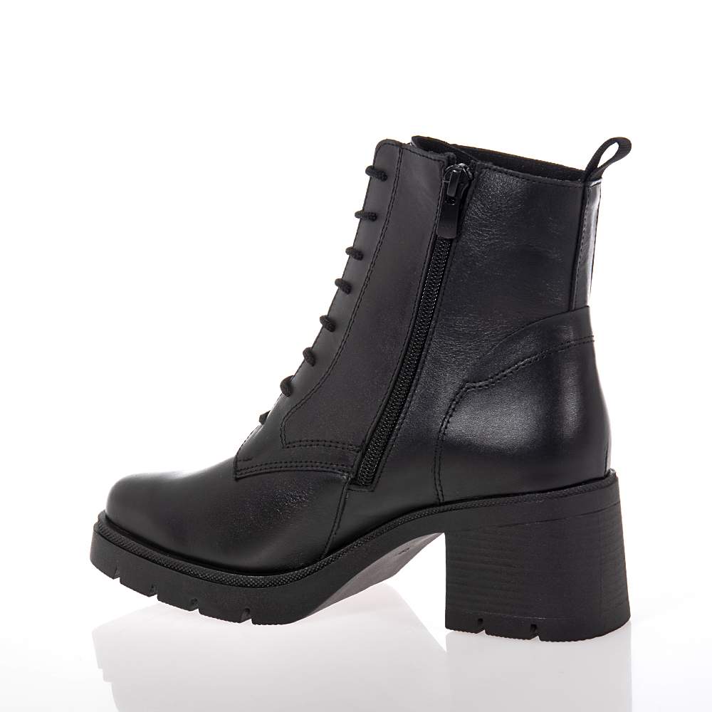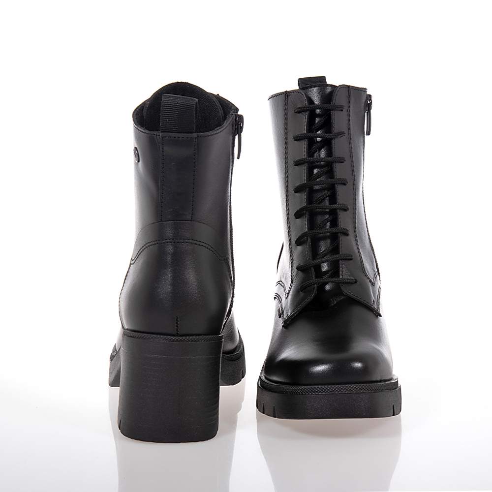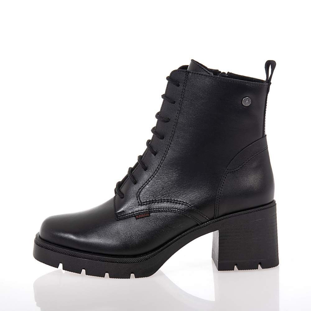 Γυναικεία μποτάκια Ragazza – 0652 δετά και με φερμουάρ στο πλάι για εύκολη εφαρμογή και σταθερό κράτημα σε μαύρο γνήσιο δέρμα και άριστης ποιότητας υλικά κατασκευής. Ιδανικά θα τα συνδυάσετε με τα jeans ή τις μακριές φούστες σας για μοναδικές εμφανίσεις με άνεση και κομψότητα.