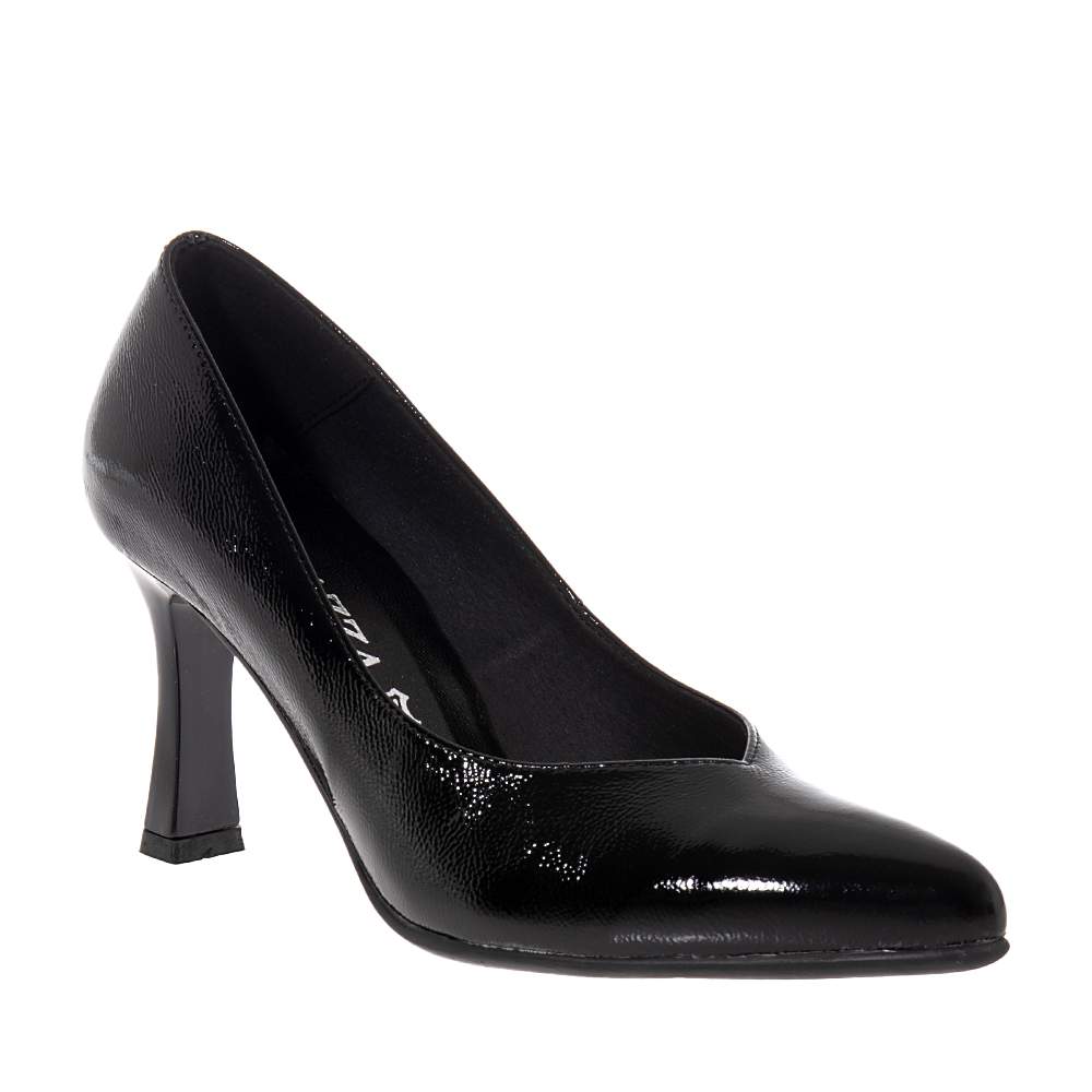 Γυναικεία γόβα Ragazza – 017 σε μαύρο γνήσιο δέρμα λουστρίνι και μυτερή φόρμα. Με ψηλό σταθερό τακούνι για μία κομψή εμφάνιση και άπειρους συνδυασμούς. Δερμάτινος ανατομικός πάτος κατασκευασμένος με την εγγύηση της εταιρείας και αντιολισθητική σόλα.