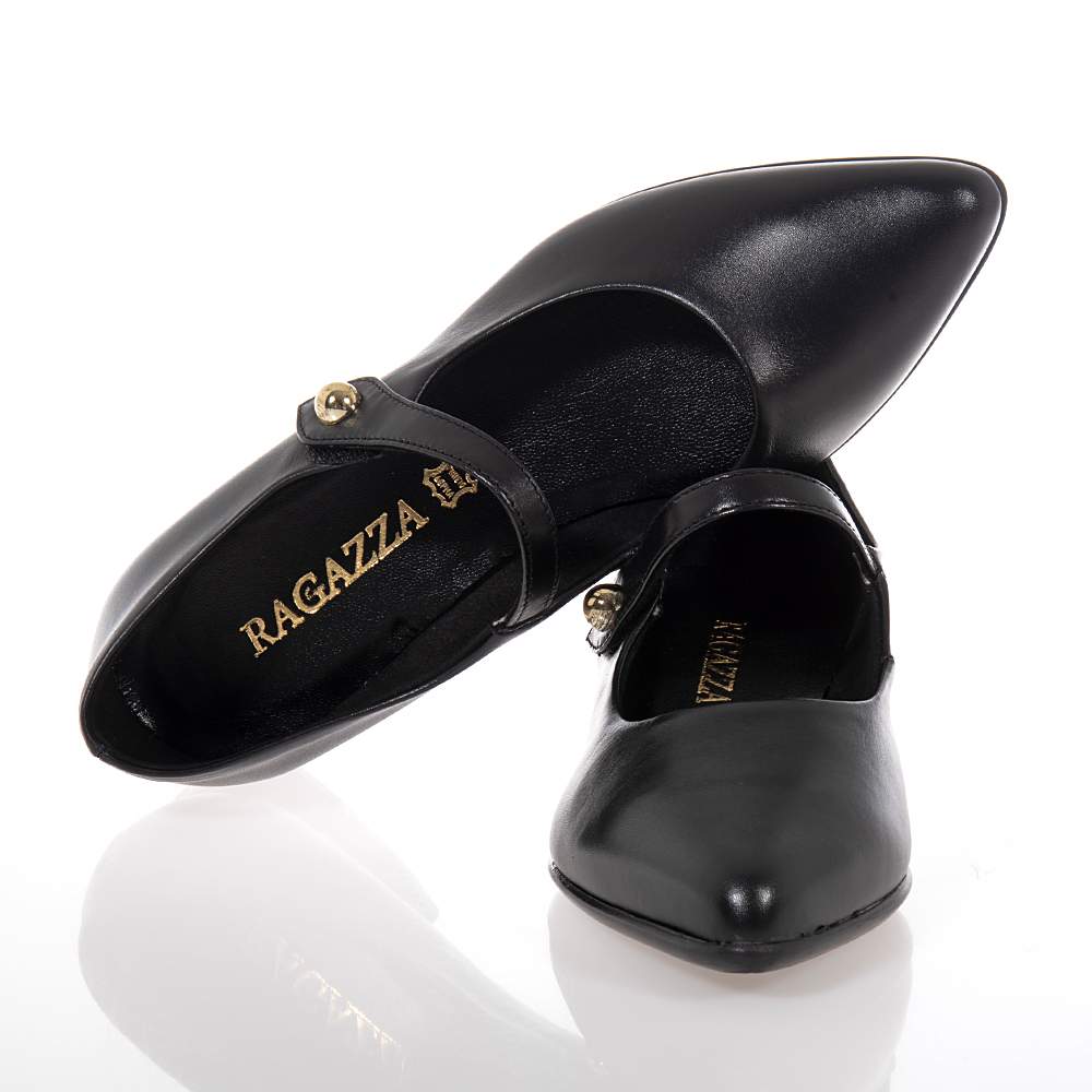 Γυναικείες γόβες Ragazza – 0142 με μπαρέτα για σταθερό κράτημα στο βάδισμα. Σε μαύρο χρώμα και γνήσιο δέρμα με υπέροχη κατασκευή για μοναδικές και κομψές εμφανίσεις. Δερμάτινος πάτος και αντιολισθητική σόλα για άνεση στην εφαρμογή.