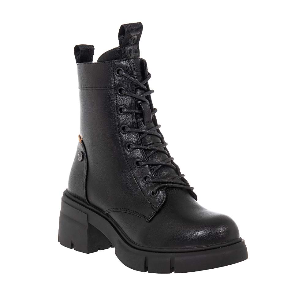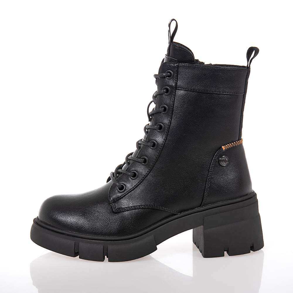 Γυναικεία μποτάκια Refresh – 172906 δετά και με φερμουάρ για εύκολη εφαρμογή και αφαίρεση. Σε μαύρο χρώμα, για να συνδυάσετε εύκολα με όλα τα σύνολά σας. Με φιάπα και χοντρό τακούνι για μέγιστη άνεση και μοντέρνες εμφανίσεις. Ιδανικά για τη βόλτα σας τις χειμωνιάτικες μέρες με λιτή γραμμή που θα λατρέψετε.