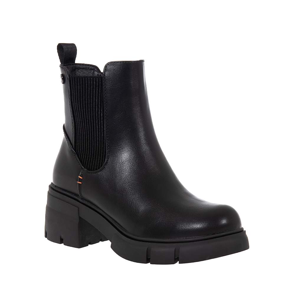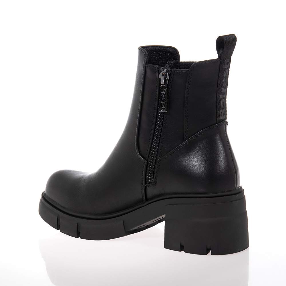 Γυναικεία μποτάκια Refresh – 172375 με λάστιχο στο πλάι και με φερμουάρ για εύκολη εφαρμογή και αφαίρεση. Σε μαύρο χρώμα, για να συνδυάσετε εύκολα με όλα τα σύνολά σας. Με δίπατη σόλα και χοντρό τακούνι για μέγιστη άνεση και μοντέρνες εμφανίσεις. Ιδανικά για τη βόλτα σας τις χειμωνιάτικες μέρες με λιτή γραμμή που θα λατρέψετε.