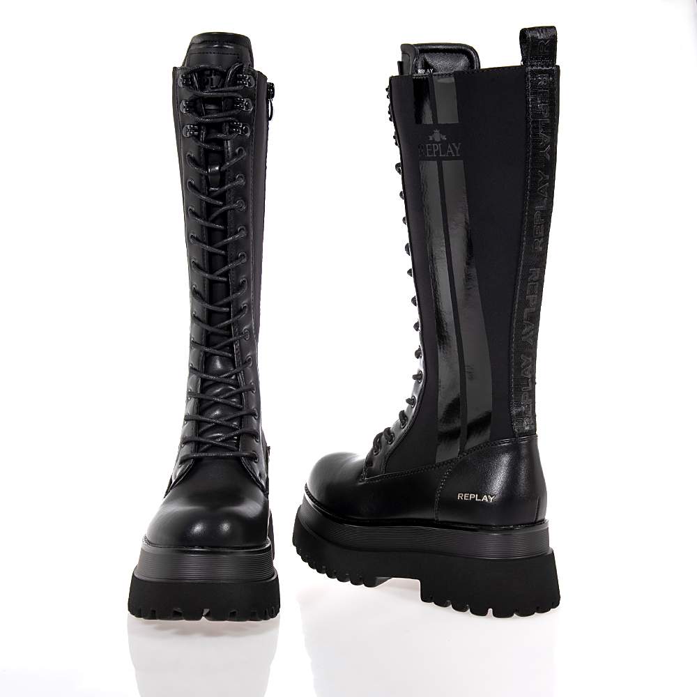 Γυναικείες μπότες Replay Any Over High – RL720023S δετές και με φερμουάρ για εύκολη εφαρμογή και καλύτερη προσαρμογή σε μαύρο χρώμα και ιδιαίτερα μοντέρνα γραμμή για να συνδυάσετε με παντελόνι ή φόρεμα και να εντυπωσιάσετε στις βόλτες σας τα πρωινά ή τα απογεύματα. Με δίπατη σόλα για άνεση στο βάδισμα.