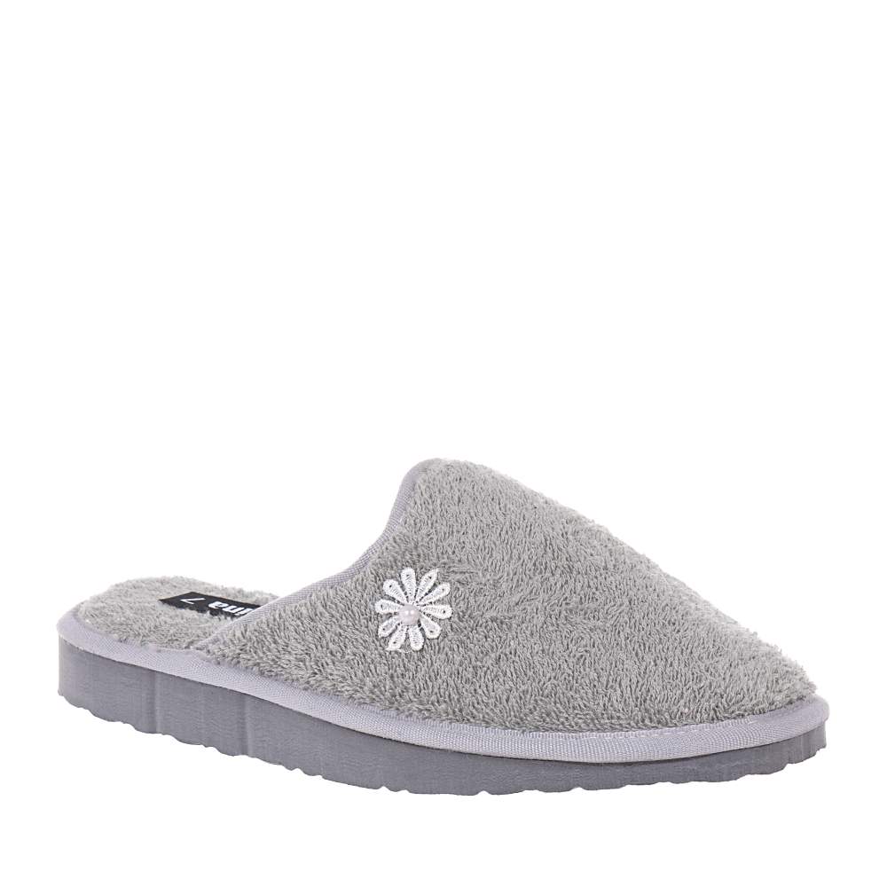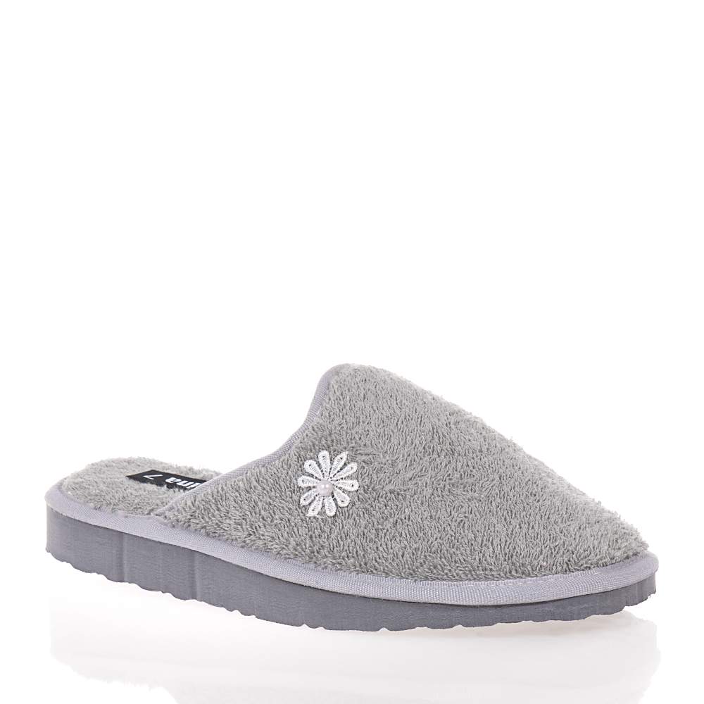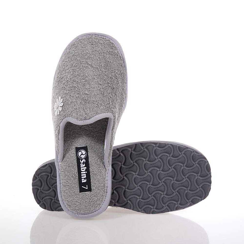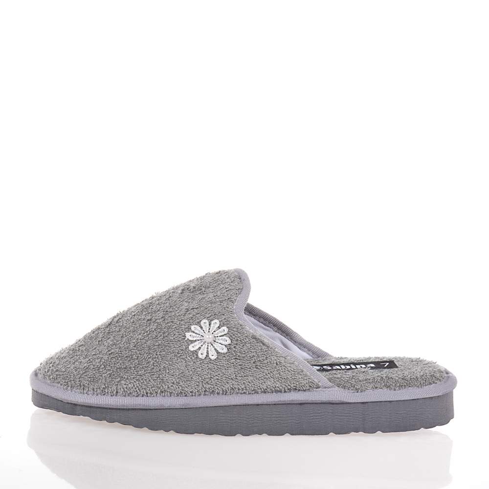 Γυναικείες παντόφλες Sabina – SA232 εξώφτερνες για εύκολη εφαρμογή και αφαίρεση σε υπέροχο γκρι χρώμα για να συνδυάσετε εύκολα με τα casual ρούχα σπιτιού. Διακοσμημένες με μικρό λουλουδάκι στο πλάι και ελαφριά κατασκευή θα σας ενθουσιάσουν.