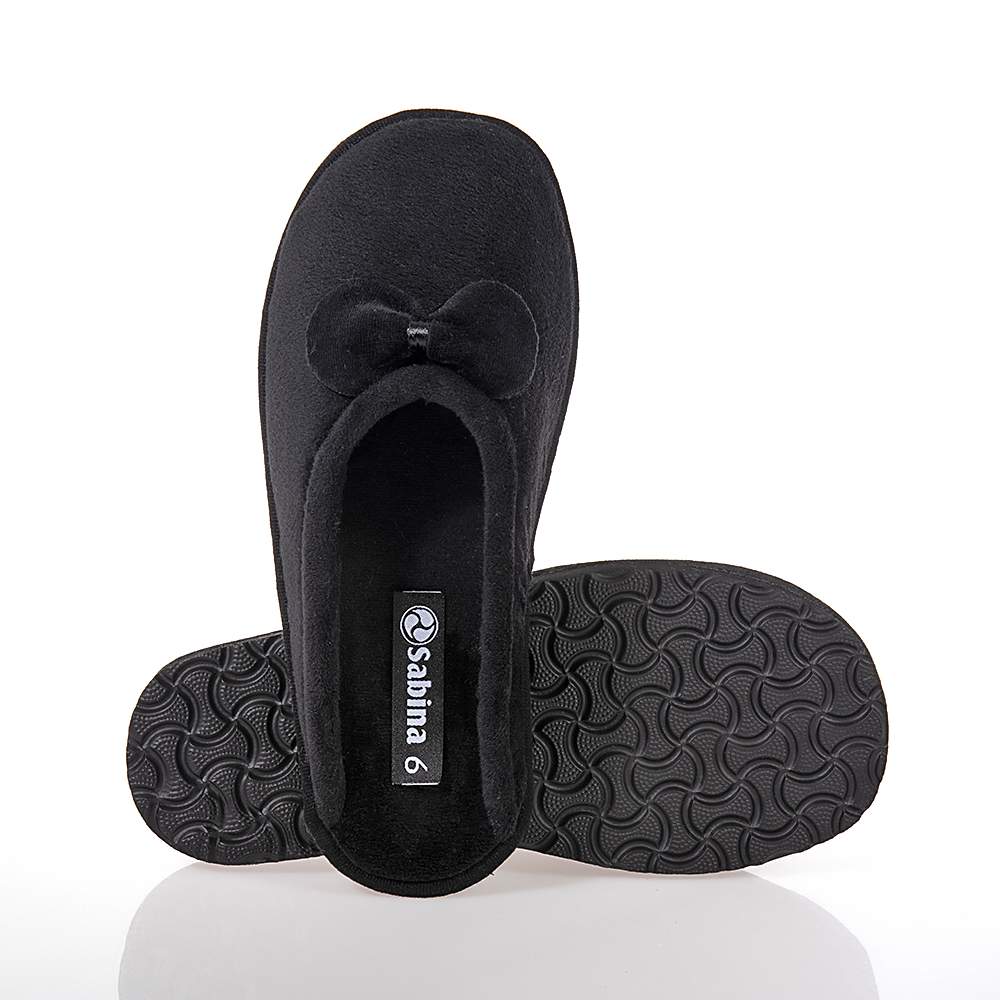Γυναικείες παντόφλες γόνδολα Sabina – SA222 εξώφτερνες για εύκολη εφαρμογή και αφαίρεση σε υπέροχο μαύρο χρώμα για να συνδυάσετε εύκολα με τα casual ρούχα σπιτιού. Διακοσμημένες με μεγάλο φιογκάκι και ελαφριά κατασκευή θα σας ενθουσιάσουν.