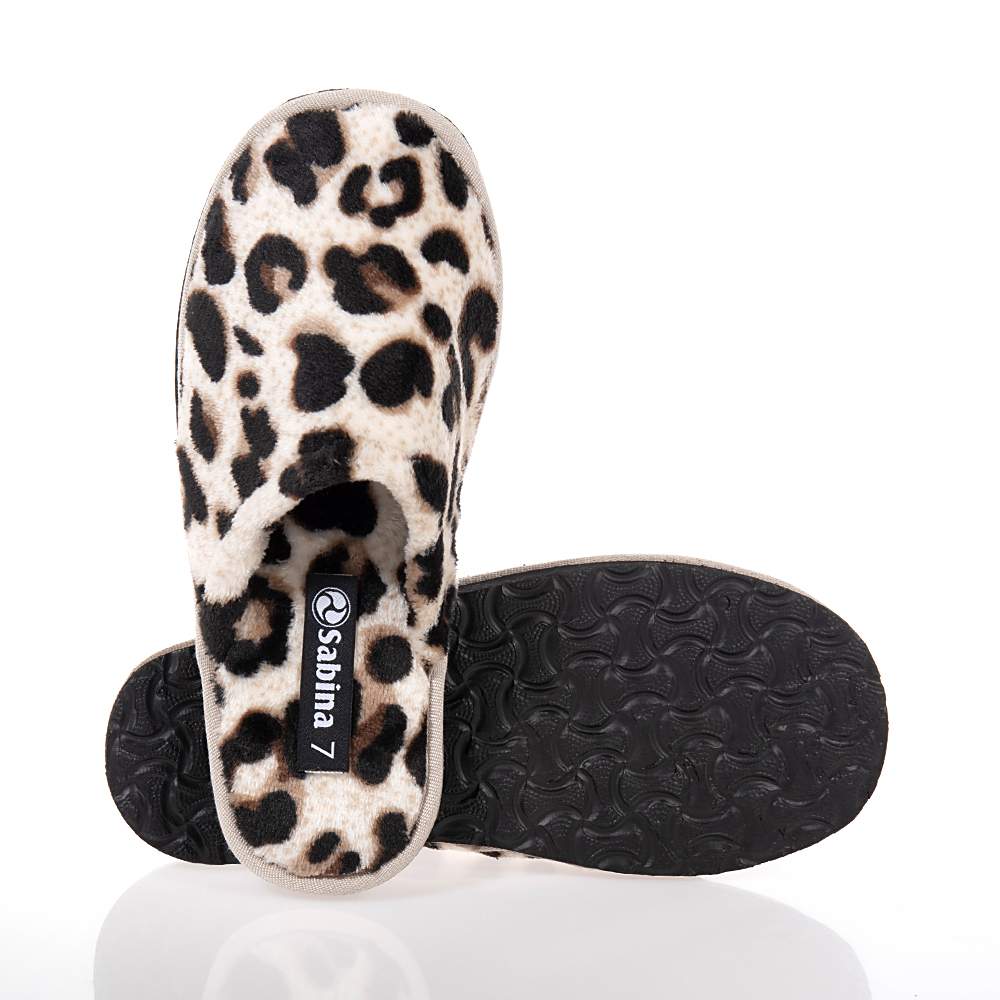Γυναικείες παντόφλες Sabina – SA215 εξώφτερνες για εύκολη εφαρμογή και αφαίρεση σε υπέροχο μπεζ λεοπάρ χρώμα για να συνδυάσετε εύκολα με τα casual ρούχα σπιτιού. Διακοσμημένες με λουλουδάκι και ελαφριά κατασκευή θα σας ενθουσιάσουν.