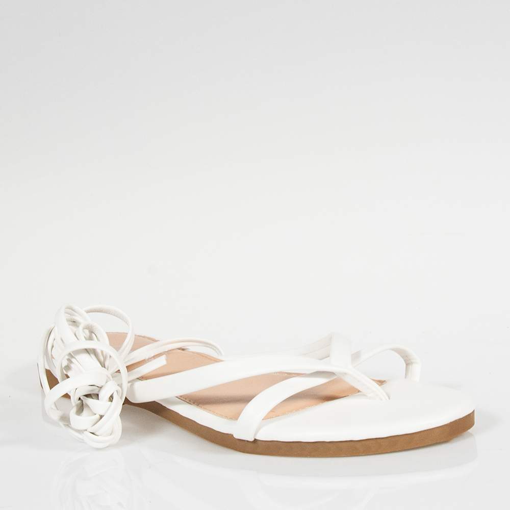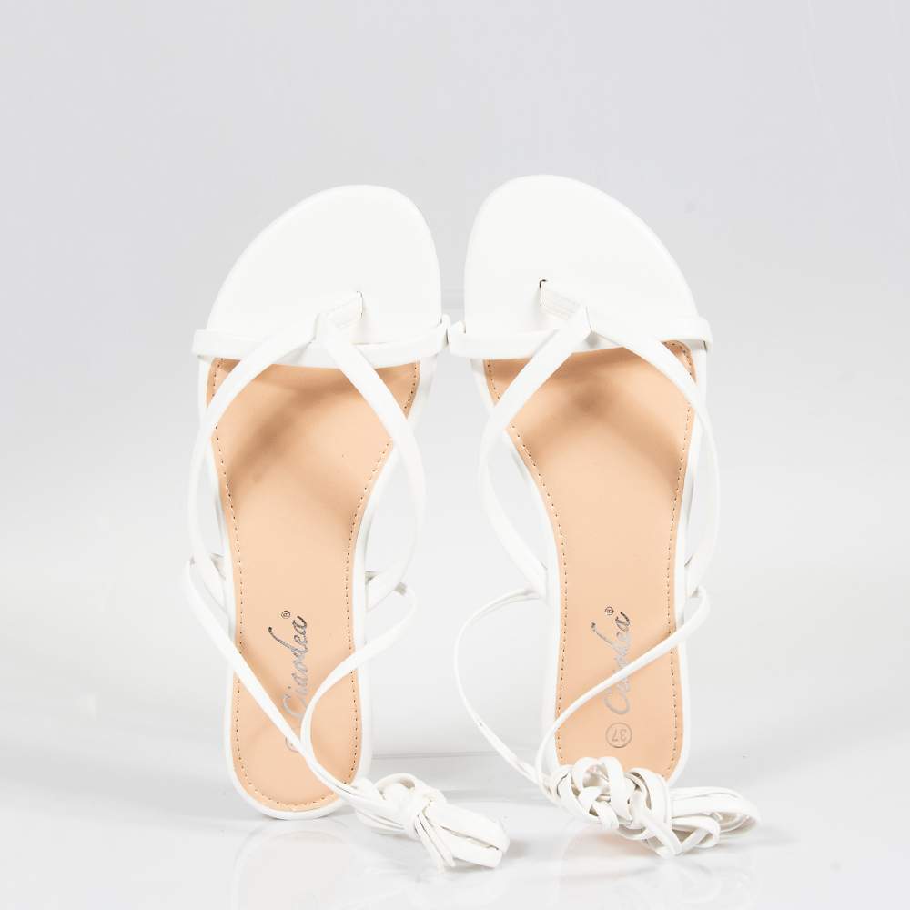 Γυναικεία σανδάλια σε λευκό χρώμα και κορδόνια που δένουν στον αστράγαλο. Θα τα λατρέψετε και θα τα συνδυάσετε εύκολα με όλα τα καθημερινά σύνολά σας ή τα αέρινα φορέματά σας για τις βόλτες σας από το πρωί έως το βράδυ. 2F6P2688-17