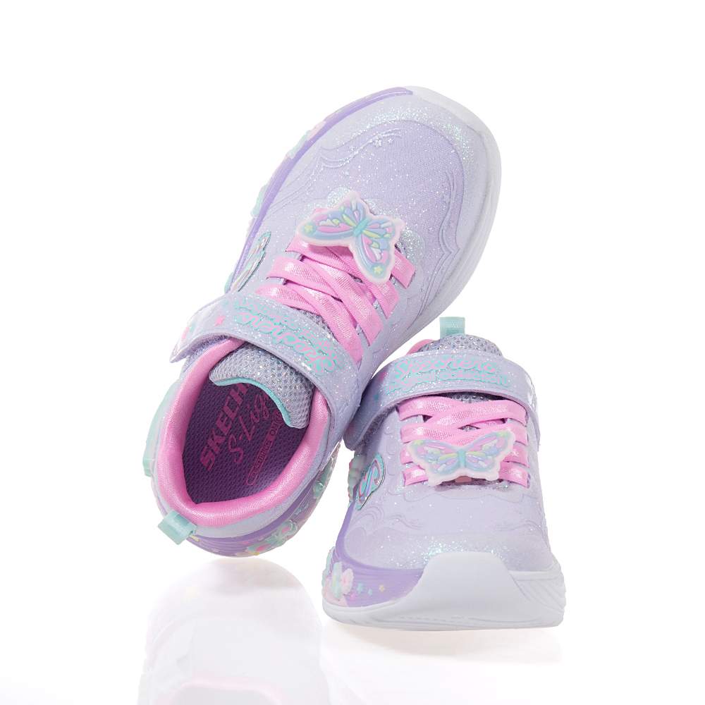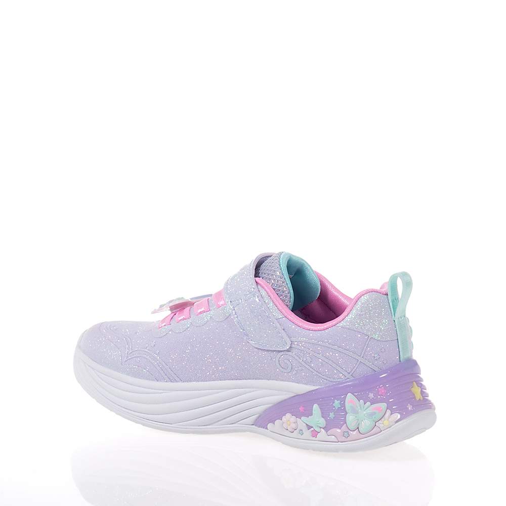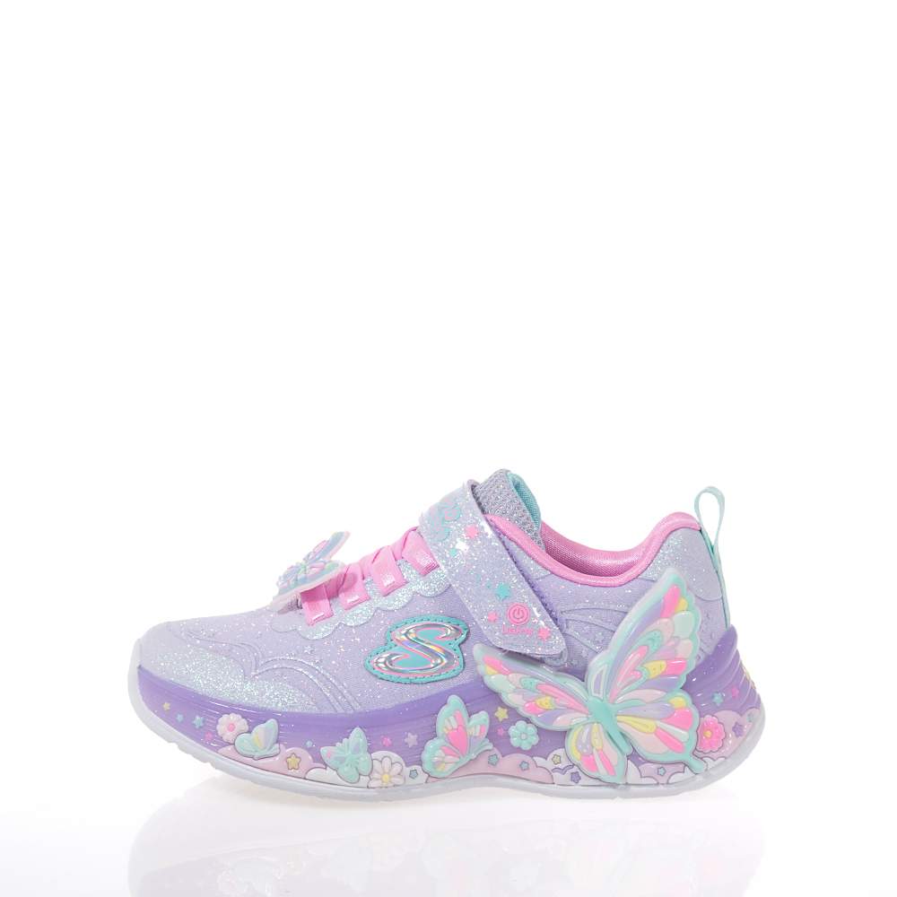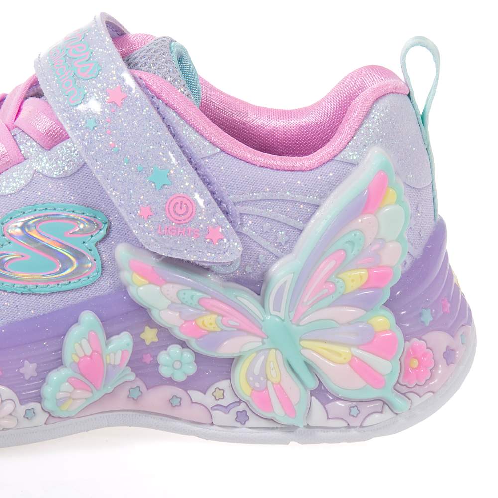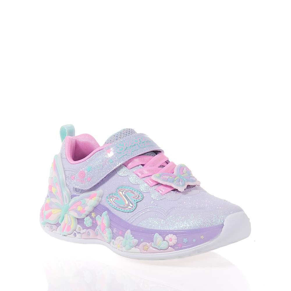 Παιδικά αθλητικά Skechers – 303065L-LVMT με αυτοκόλλητο και κορδόνια λάστιχο για εύκολη εφαρμογή σε υπέροχο λιλά και παλ χρωματισμό με glitter και διακοσμητικές πεταλούδες για εντυπωσιακές εμφανίσεις. Ιδανικά για τις αθλητικές δραστηριότητες ή το σχολείο τους. Με φωτάκια που αναβοσβήνουν κατά το περπάτημα και σύστημα On/Off.