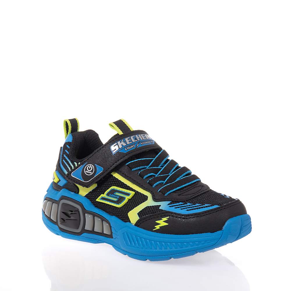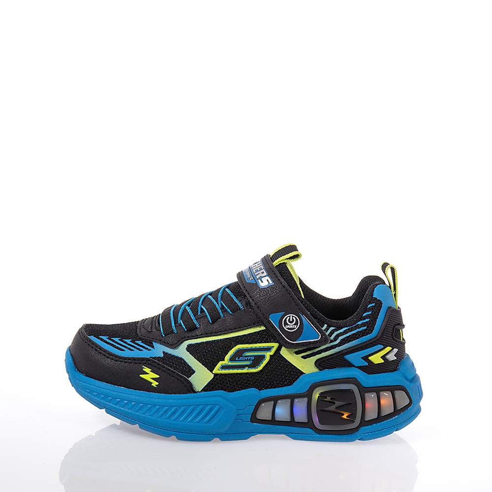Παιδικά αθλητικά Skechers – 400151L-BBLM με αυτοκόλλητο και κορδόνια λάστιχο για εύκολη εφαρμογή σε υπέροχο μαύρο χρώμα με μπλε λεπτομέρειες για εντυπωσιακές εμφανίσεις. Ιδανικά για τις αθλητικές δραστηριότητες ή το σχολείο τους. Με φωτάκια που αναβοσβήνουν κατά το περπάτημα σε μοντέρνα γραμμή.
