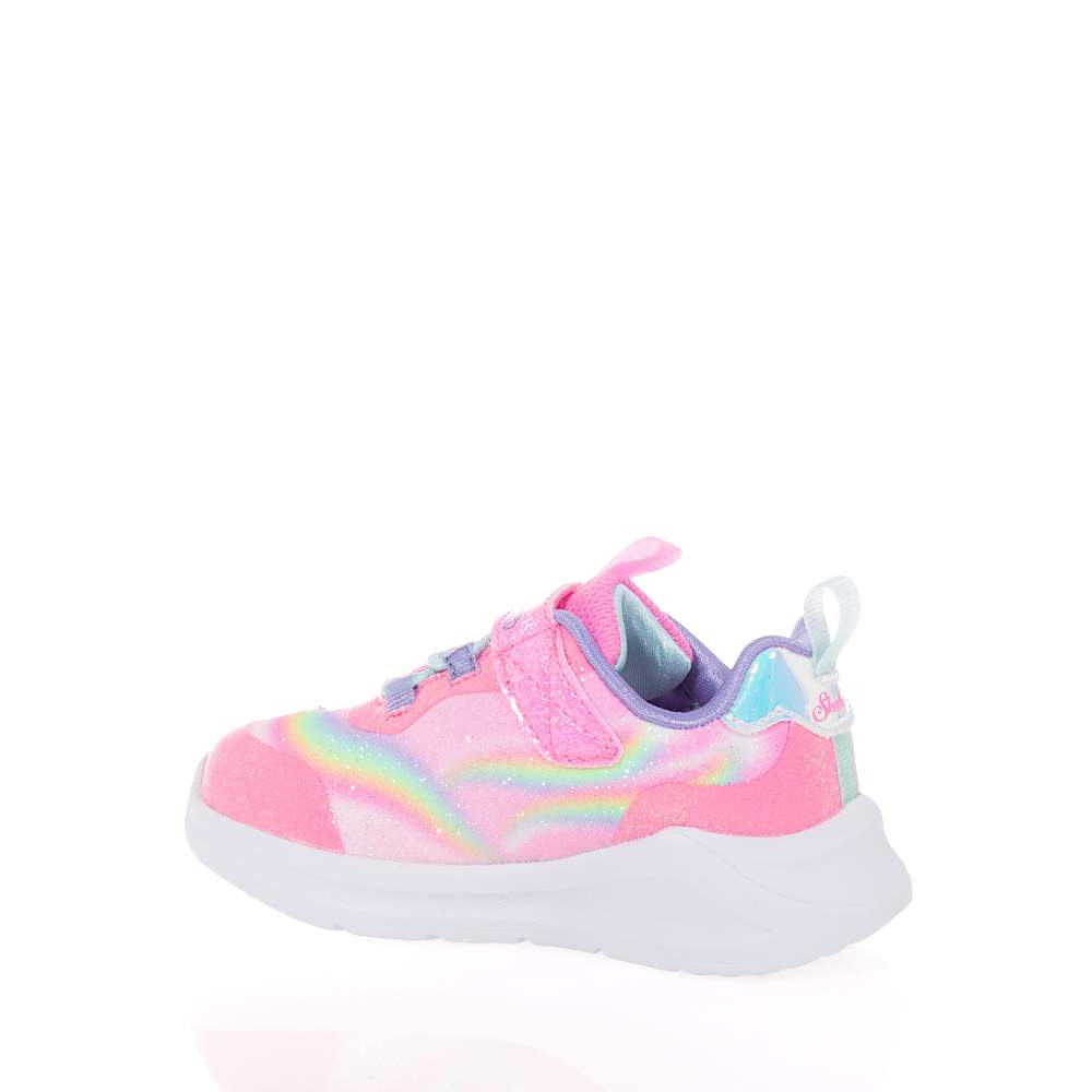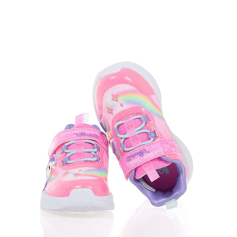 Παιδικά αθλητικά Skechers – 302298N-PKMT με αυτοκόλλητο και κορδόνια λάστιχο για εύκολη εφαρμογή σε υπέροχο ροζ και multi χρωματισμό με glitter και μονόκερο στη σόλα για εντυπωσιακές εμφανίσεις. Ιδανικά για τις αθλητικές δραστηριότητες ή το σχολείο τους. Με φωτάκια που αναβοσβήνουν κατά το περπάτημα και σύστημα On/Off.