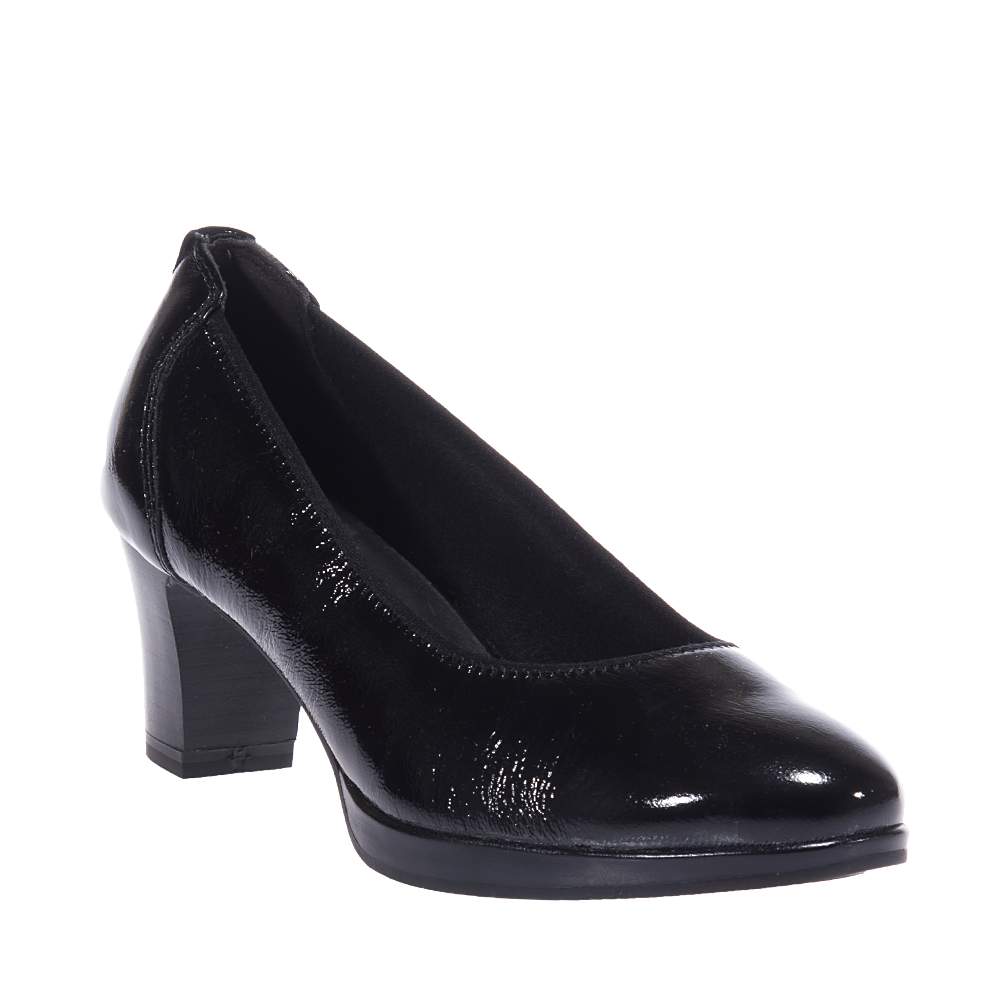 Γυναικείες γόβες Tamaris – 22446-29 σε μαύρο χρώμα λουστρίνι και μεσαίο τακούνι που θα αναδείξει όλα τα σύνολά σας και θα σας δώσει άνεση και στυλ στη βόλτα ή το γραφείο. Με λάστιχο για μέγιστη σταθερότητα και κράτημα στο βάδισμα. Μοναδικός πάτος Touch it για αίσθηση άνεσης στην εφαρμογή.