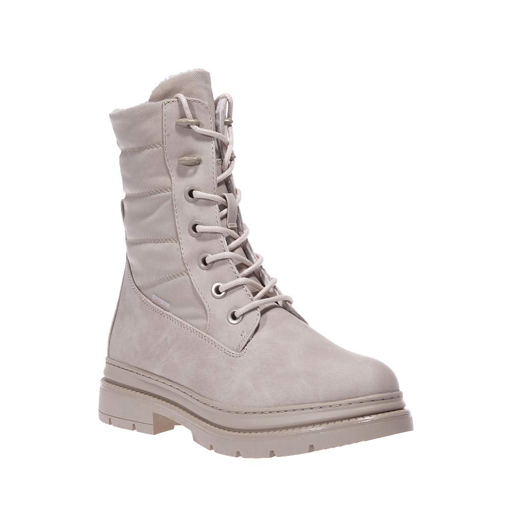 Γυναικεία μποτάκια Tamaris – 26853-29 δετά και με φερμουάρ για εύκολη εφαρμογή και αφαίρεση σε μπεζ χρώμα για να συνδυάσετε με τα jeans σας και να εντυπωσιάσετε στις βόλτες σας τα πρωινά ή τα απογεύματα. Αδιάβροχα και με γούνινη επένδυση για να κρατά ζεστά και στεγνά τα πόδια σας.