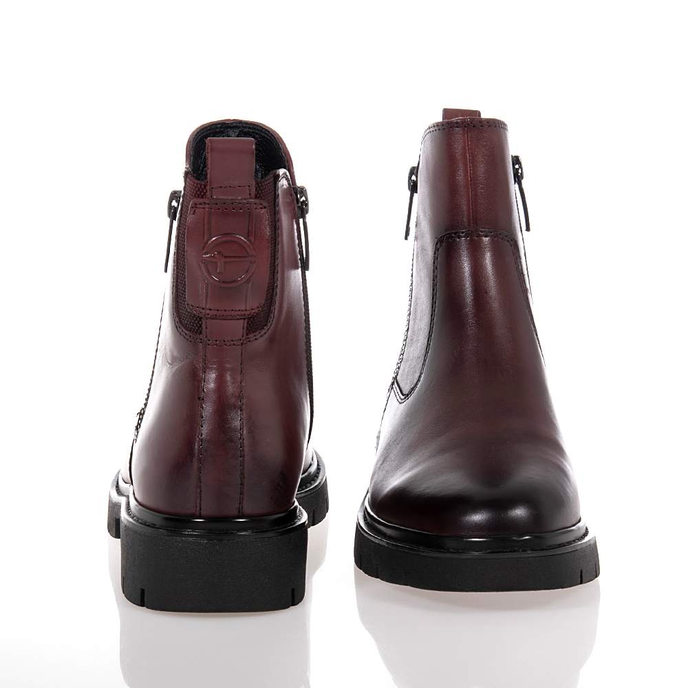 Γυναικεία μποτάκια Tamaris Comfort – 85406-45 με φερμουάρ για εύκολη εφαρμογή και αφαίρεση. Σε μπορντό γνήσιο δέρμα, για να μπορέσετε να συνδυάσετε άνετα με όλα τα σπορ σύνολά σας. Μοντέρνα εμφάνιση και στυλ θα γίνουν ο αχώριστος σύντροφός σας για το φετινό χειμώνα. Κατασκευασμένο με αποσπώμενο πάτο, για να φορέσετε με άνεση όλες τις ημέρες του χειμώνα.