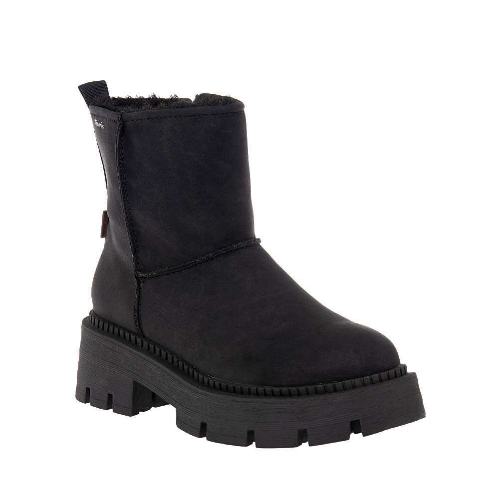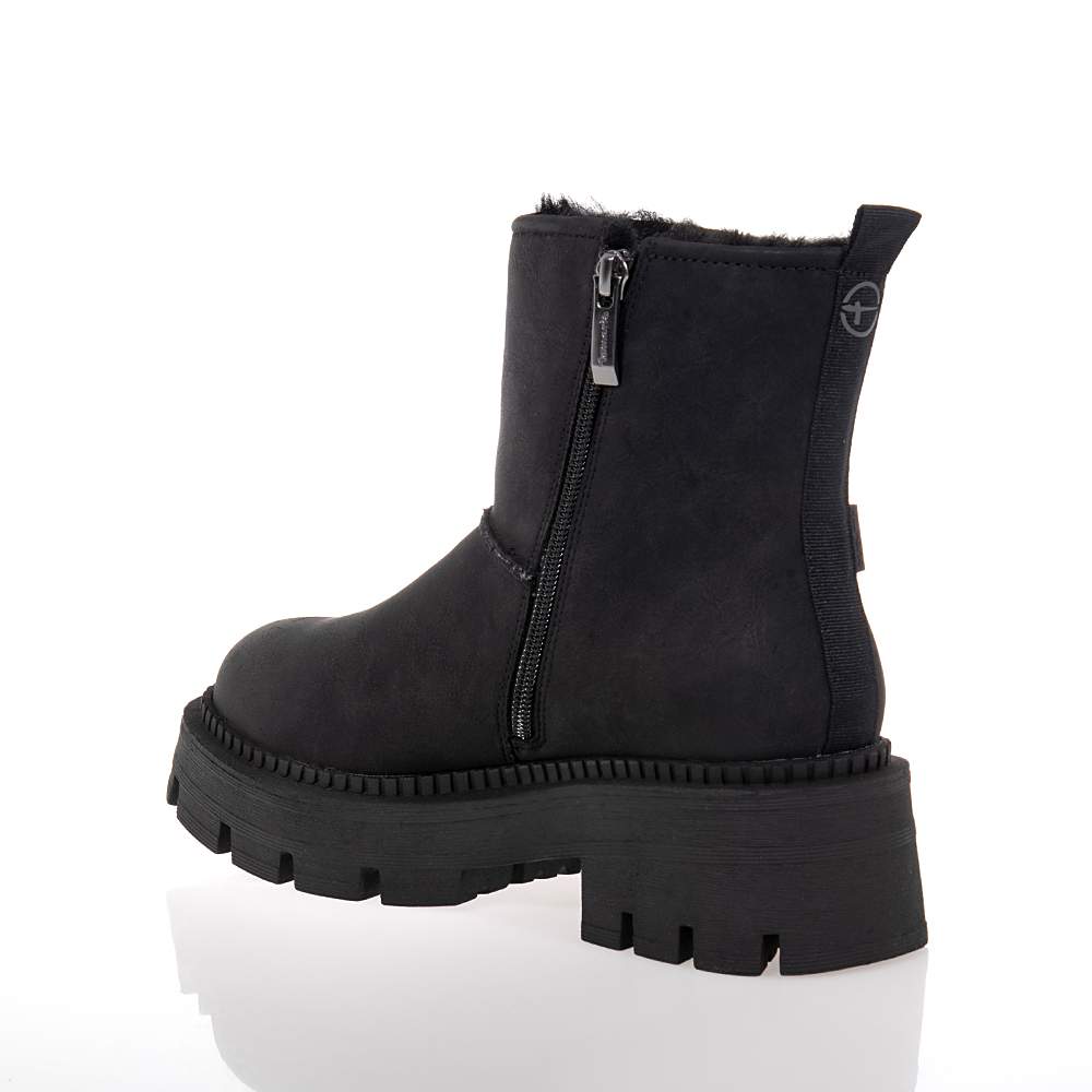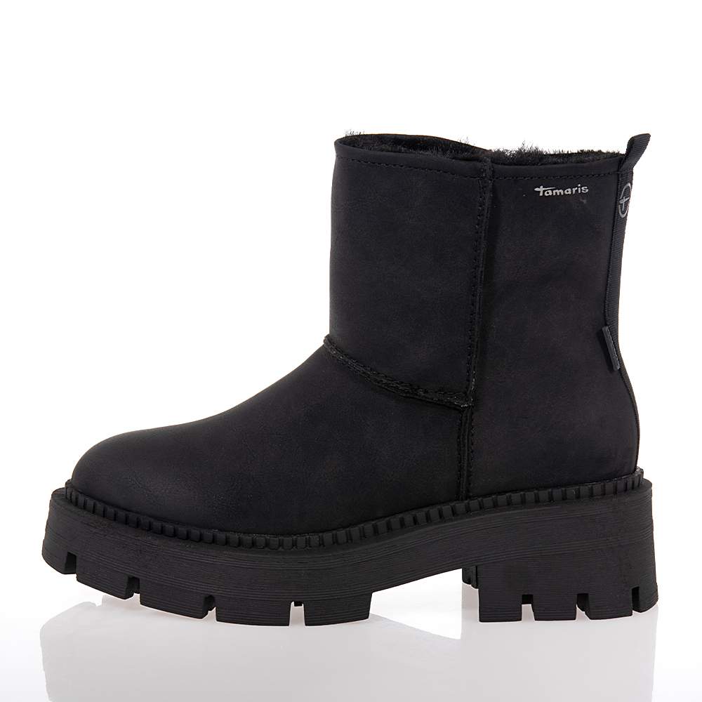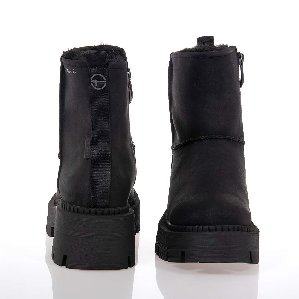 Γυναικεία μποτάκια Tamaris – 26439-43 με φερμουάρ για εύκολη εφαρμογή και αφαίρεση σε μαύρο χρώμα, για να συνδυάσετε με τα jeans ή τα κολάν σας και να εντυπωσιάσετε στις βόλτες σας τα πρωινά ή τα απογεύματα. Αδιάβροχα και με γούνινη επένδυση για να κρατά ζεστά και στεγνά τα πόδια σας. Με πάτο κατασκευασμένο με την τεχνολογία Touch it.