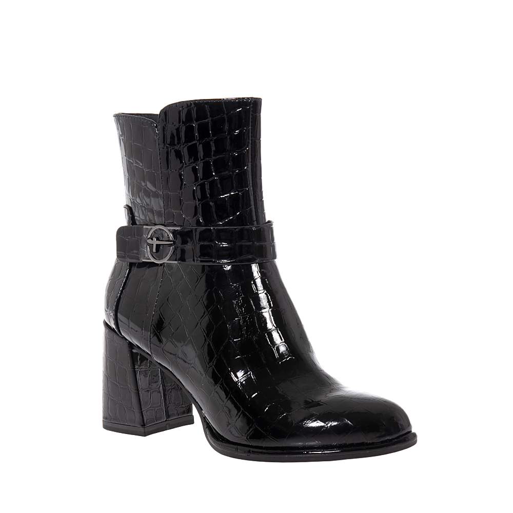 Γυναικεία μποτάκια Tamaris – 25337-45 με φερμουάρ για εύκολη εφαρμογή και αφαίρεση. Σε υπέροχο μαύρο χρώμα κροκό με διακοσμητικό ζωνάκι και λιτή γραμμή για άπειρους συνδυασμούς είναι ιδανικά για μία μοντέρνα εμφάνιση. Φοριούνται άψογα με παντελόνι ή φόρεμα.