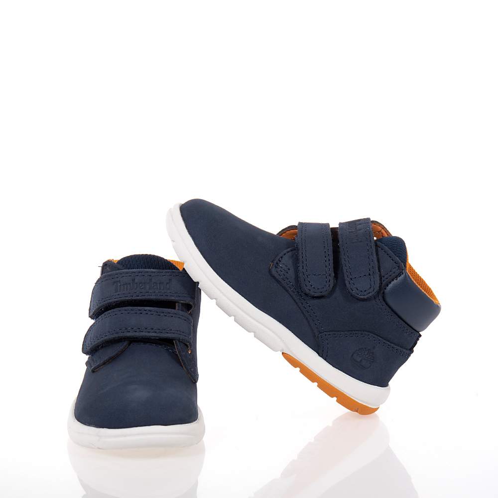 Παιδικά μποτάκια Timberland – A2K28 με αυτοκόλλητα για καλύτερη εφαρμογή. Σε μπλε γνήσιο δέρμα σαμουά άριστης ποιότητας με μπλε σκούρο μαλακό γιακά. Πάτος κατασκευασμένος με τη μοναδική τεχνολογία Ortholite. Διατηρεί την ελαστικότητά του, αφήνει το πέλμα να αναπνέει, διώχνει την υγρασία. Αναστέλλει τη δημιουργία κακοσμίας. Με αντιολισθητική σόλα που απορροφάει τους κραδασμούς κατά το περπάτημα.
