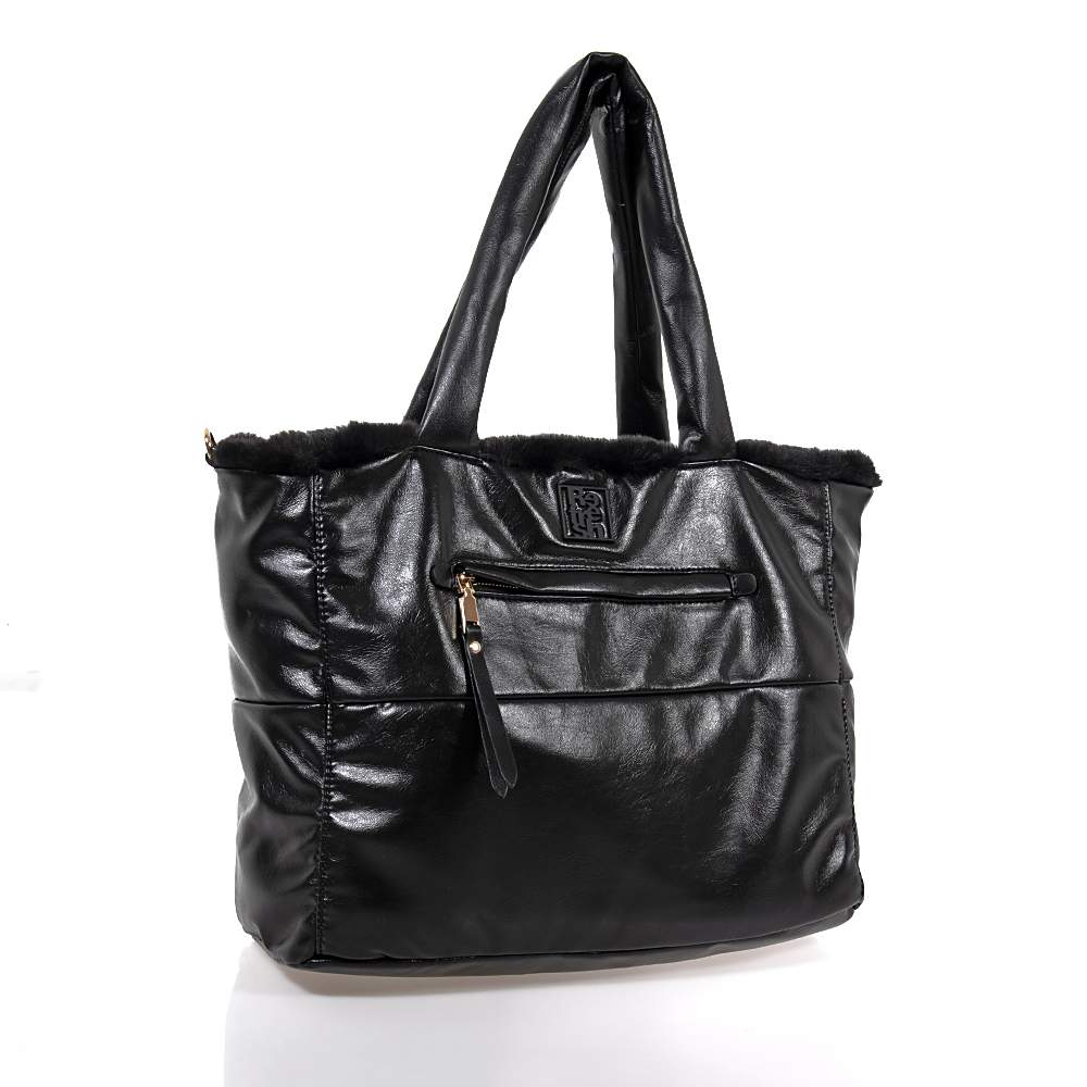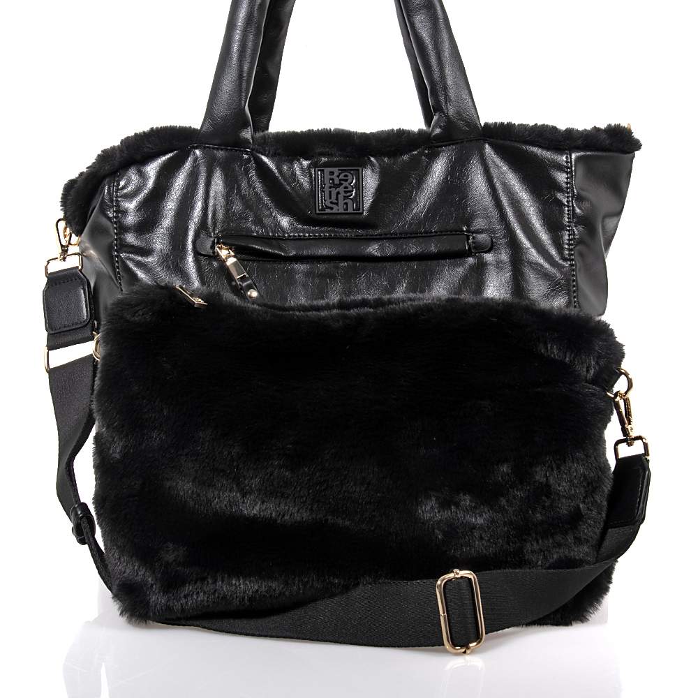 Γυναικεία τσάντα XTI – 183334 σε υπέροχο μαύρο χρώμα για να συνδυάσετε εύκολα με άποψη και στυλ. Ιδανική για τις εξόδους σας θα εντυπωσιάσετε και θα ενθουσιαστείτε με μία κομψή τσάντα που θα αναδείξει το σύνολό σας. Διπλής όψης για δύο διαφορετικές εμφανίσεις. Η μία όψη είναι με γούνινη επένδυση. Εσωκλείεται μικρό αποσπώμενο τσαντάκι σε γούνα.