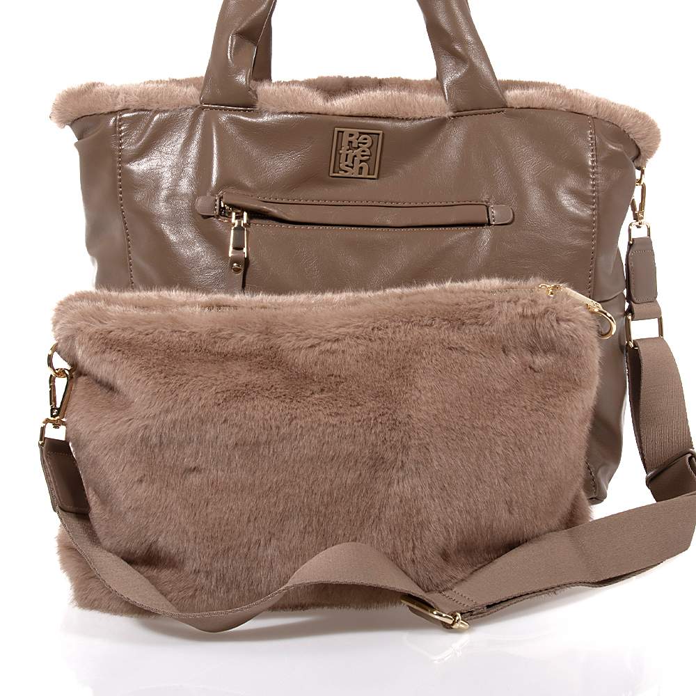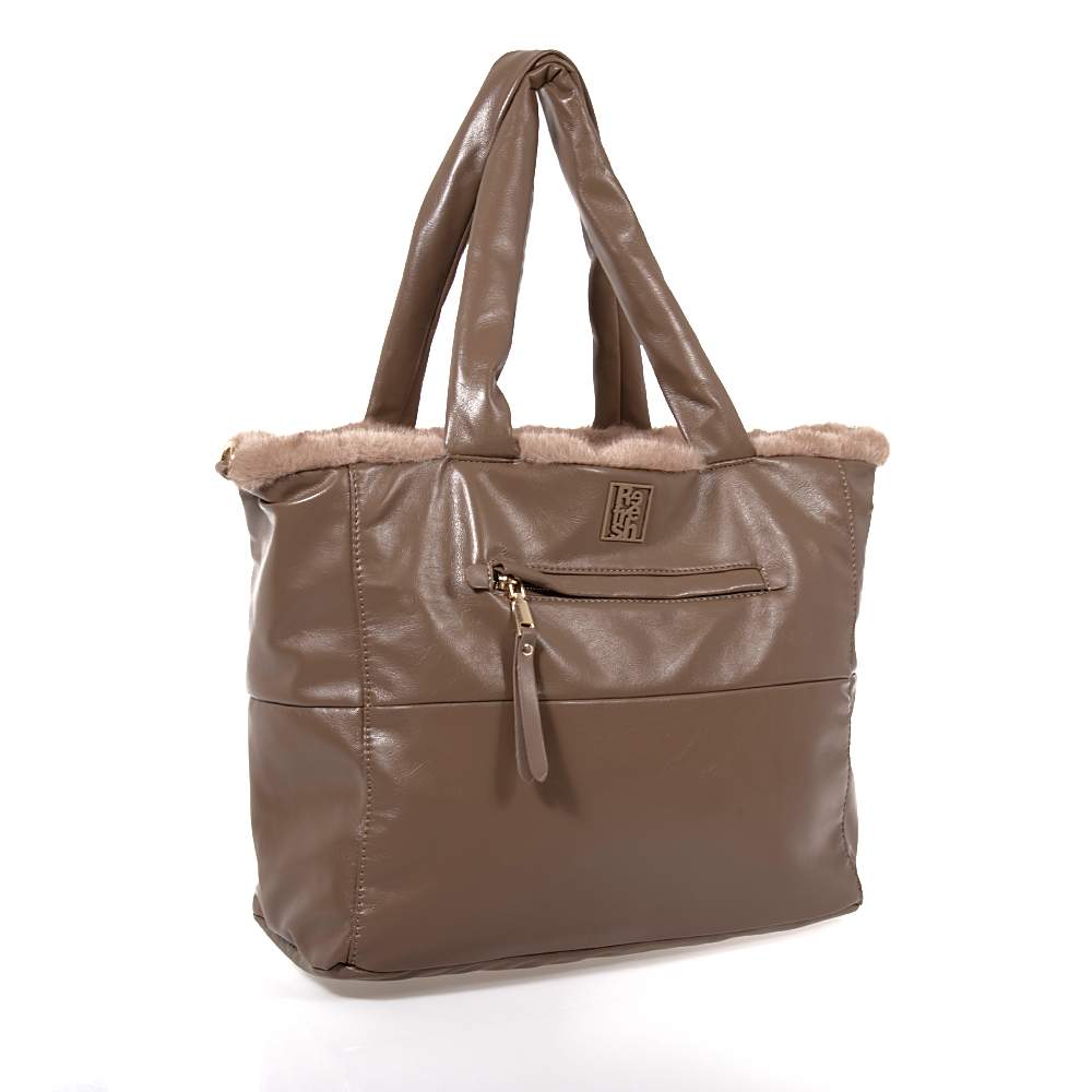 Γυναικεία τσάντα XTI – 183334 σε υπέροχο ταμπά χρώμα για να συνδυάσετε εύκολα με άποψη και στυλ. Ιδανική για τις εξόδους σας θα εντυπωσιάσετε και θα ενθουσιαστείτε με μία κομψή τσάντα που θα αναδείξει το σύνολό σας. Διπλής όψης για δύο διαφορετικές εμφανίσεις. Η μία όψη είναι με γούνινη επένδυση. Εσωκλείεται μικρό αποσπώμενο τσαντάκι σε γούνα.